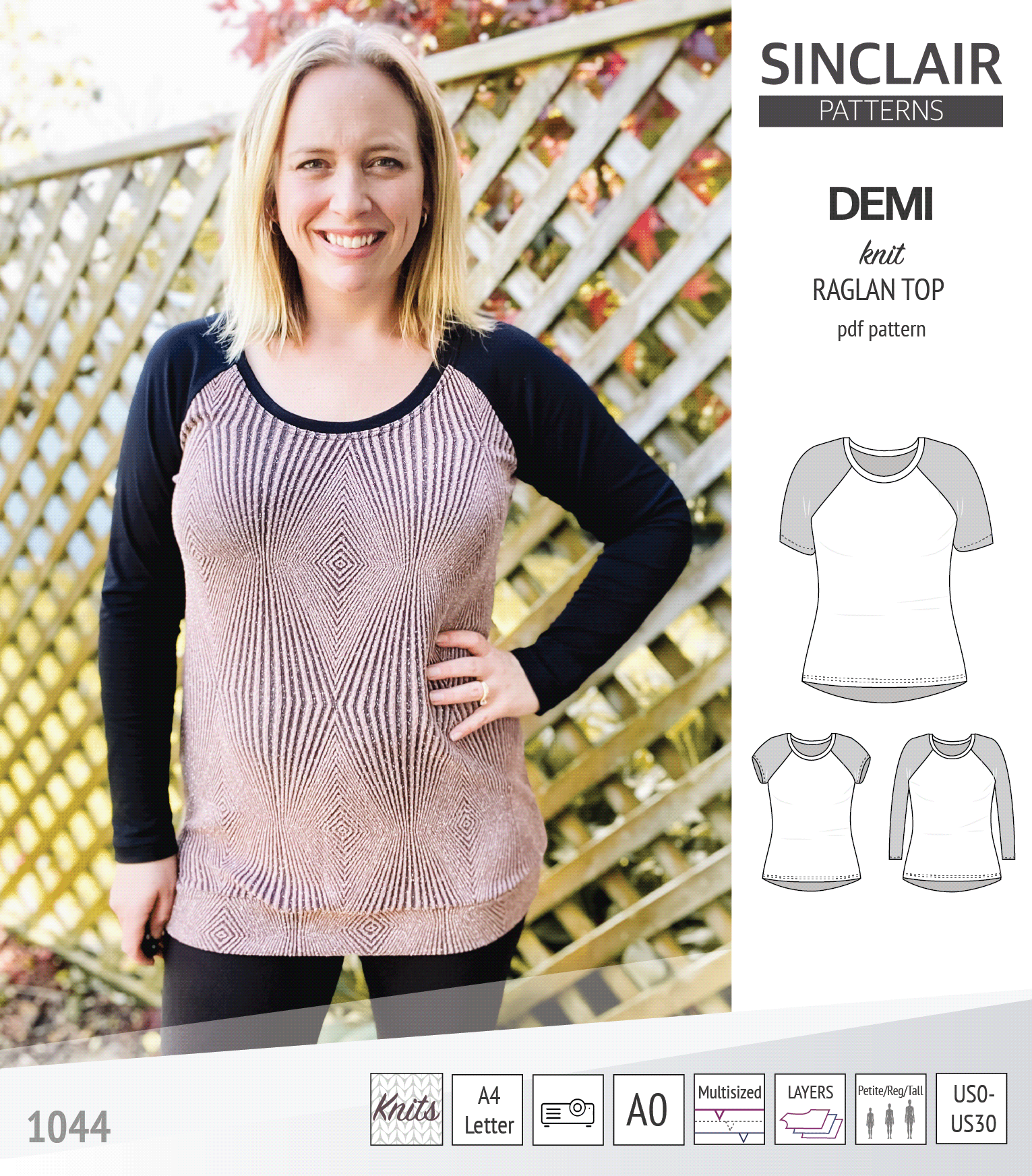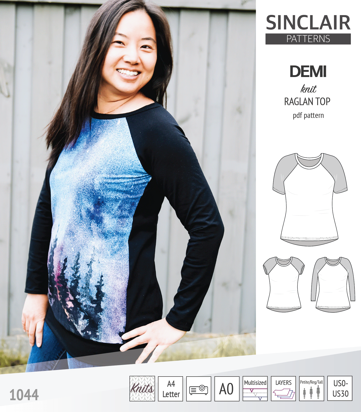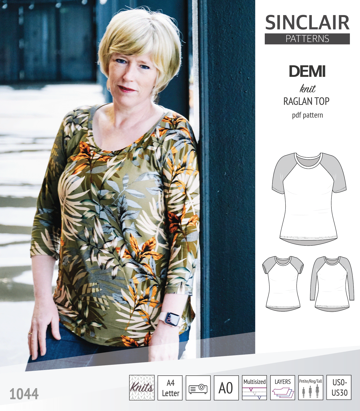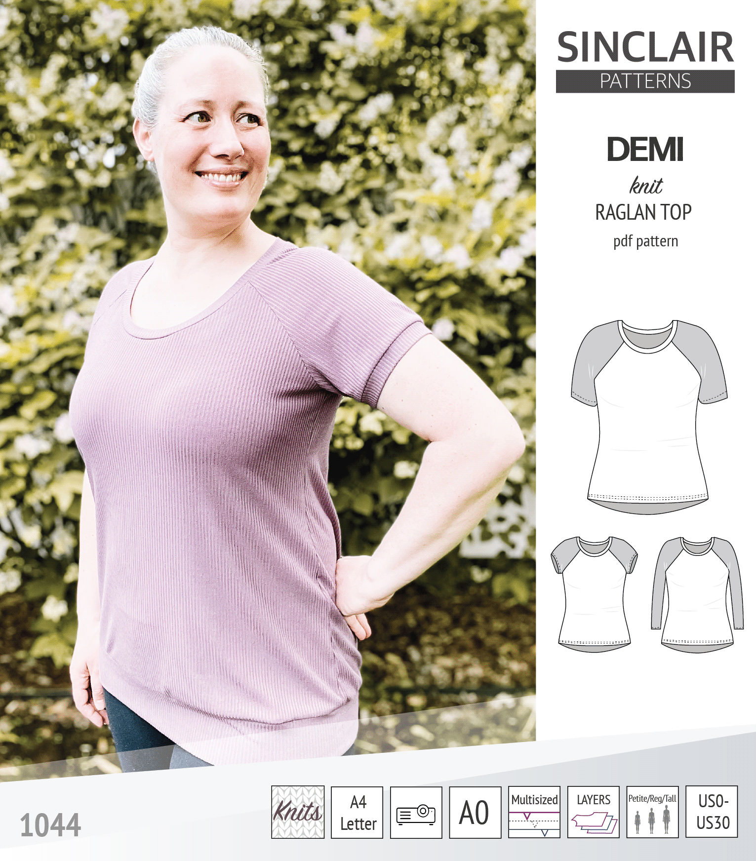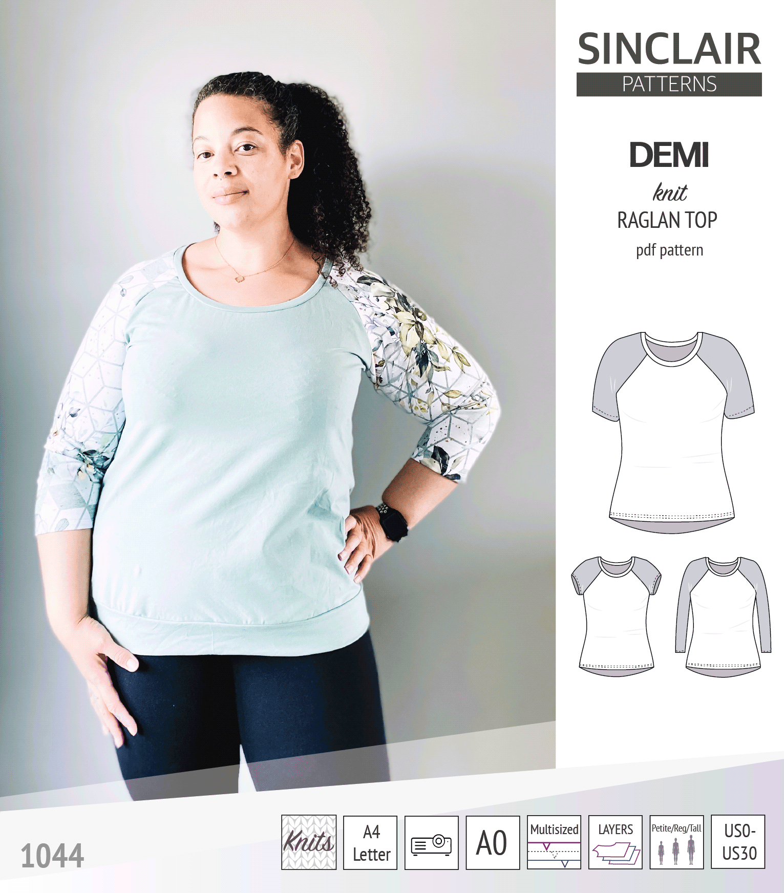 I love Sinclair patterns! I find them easy to sew and the finished garment always looks great! The Demi raglan is a quick make. It’s fitted but not tight. I love the curved hemline. I made the long sleeve version in a petite. I’ve already made 2 and will definitely make more!
