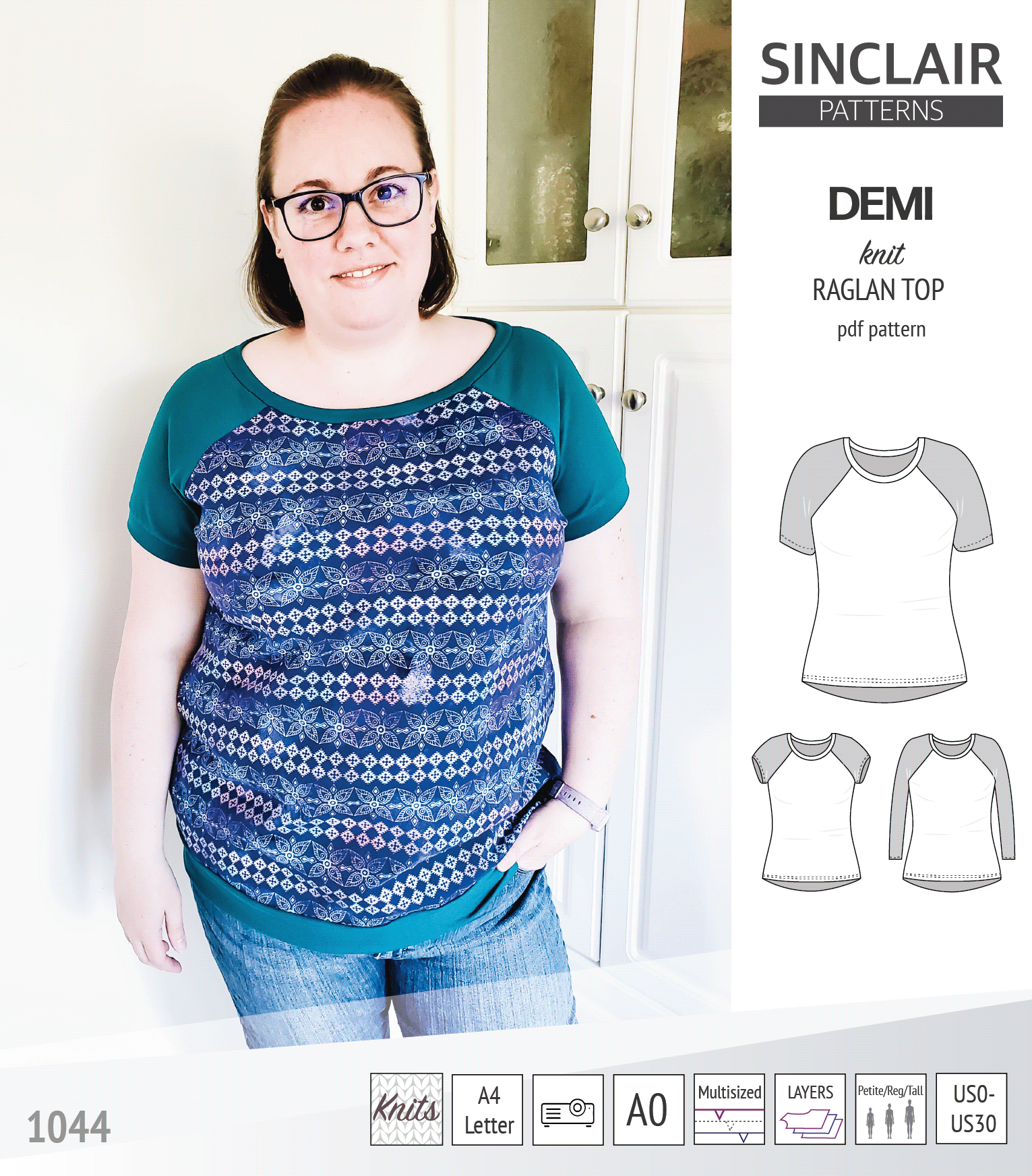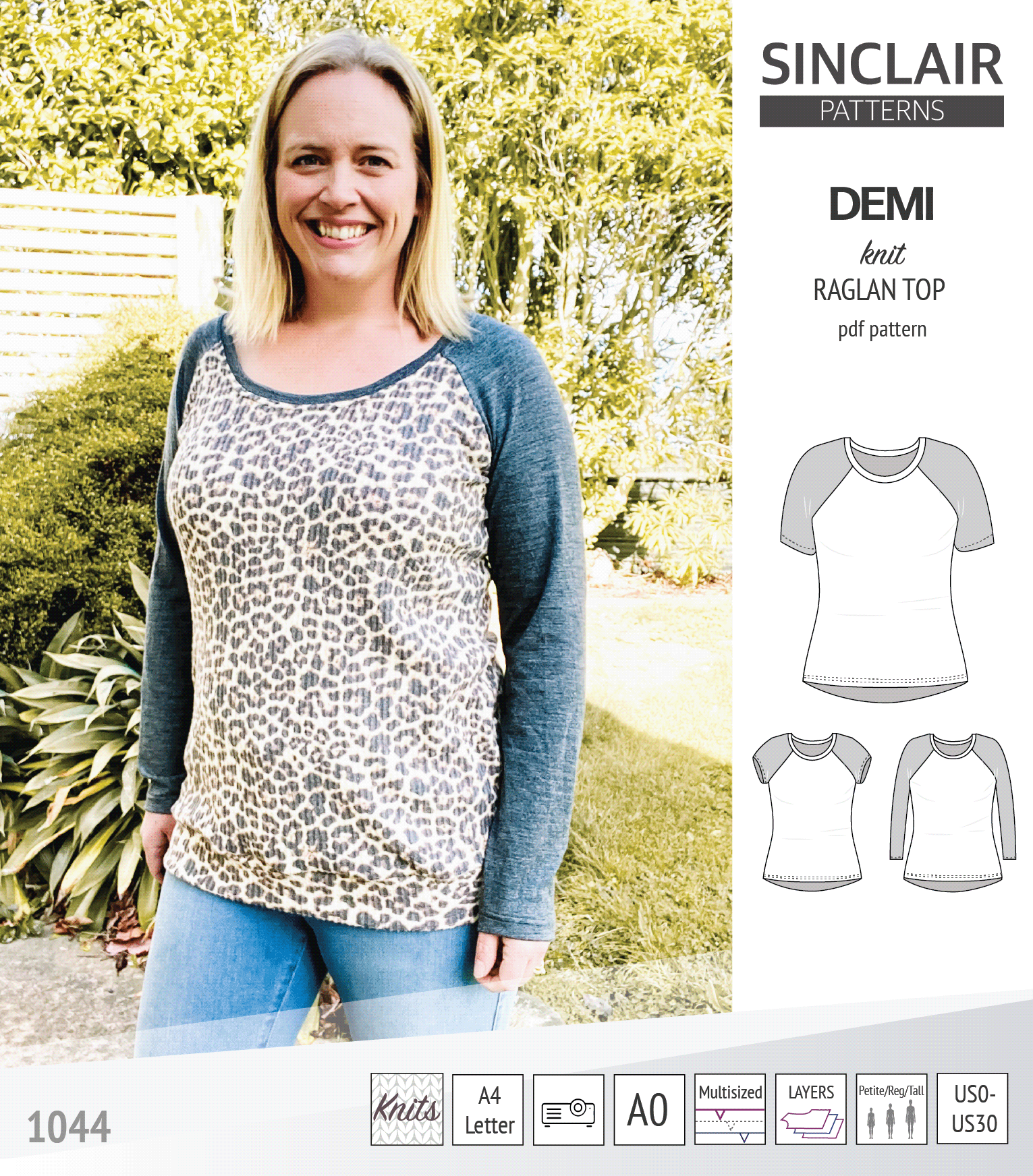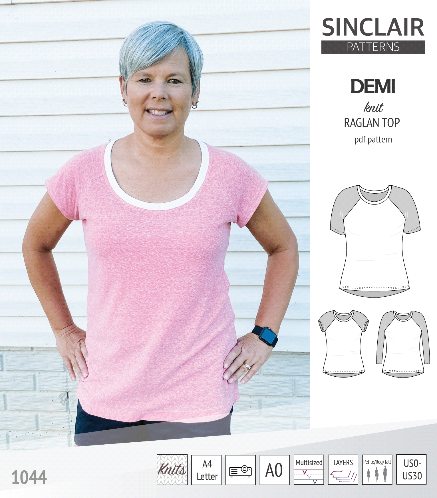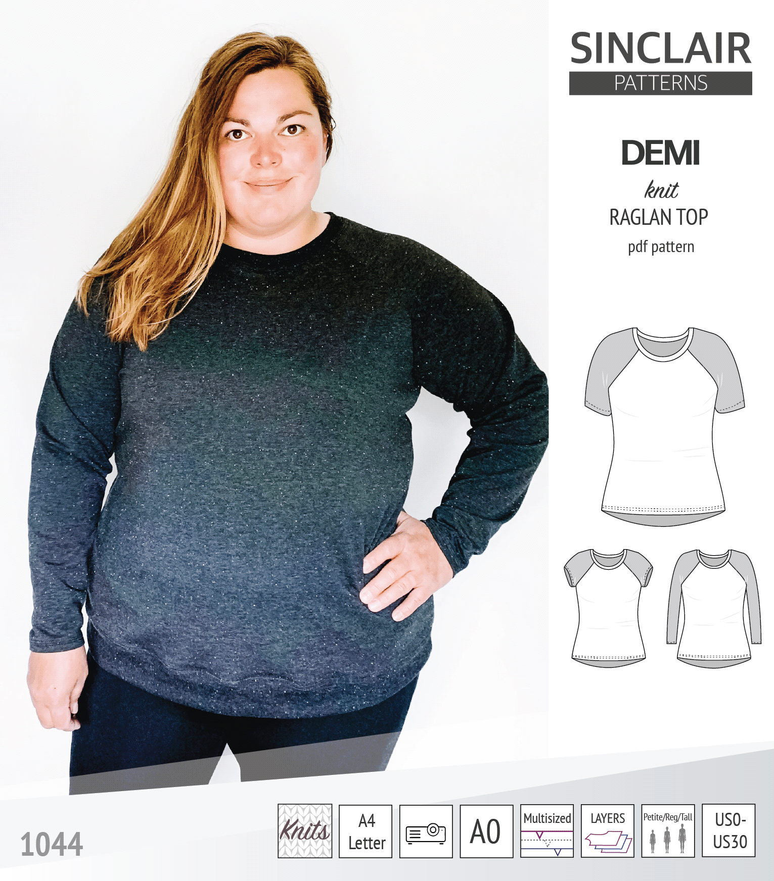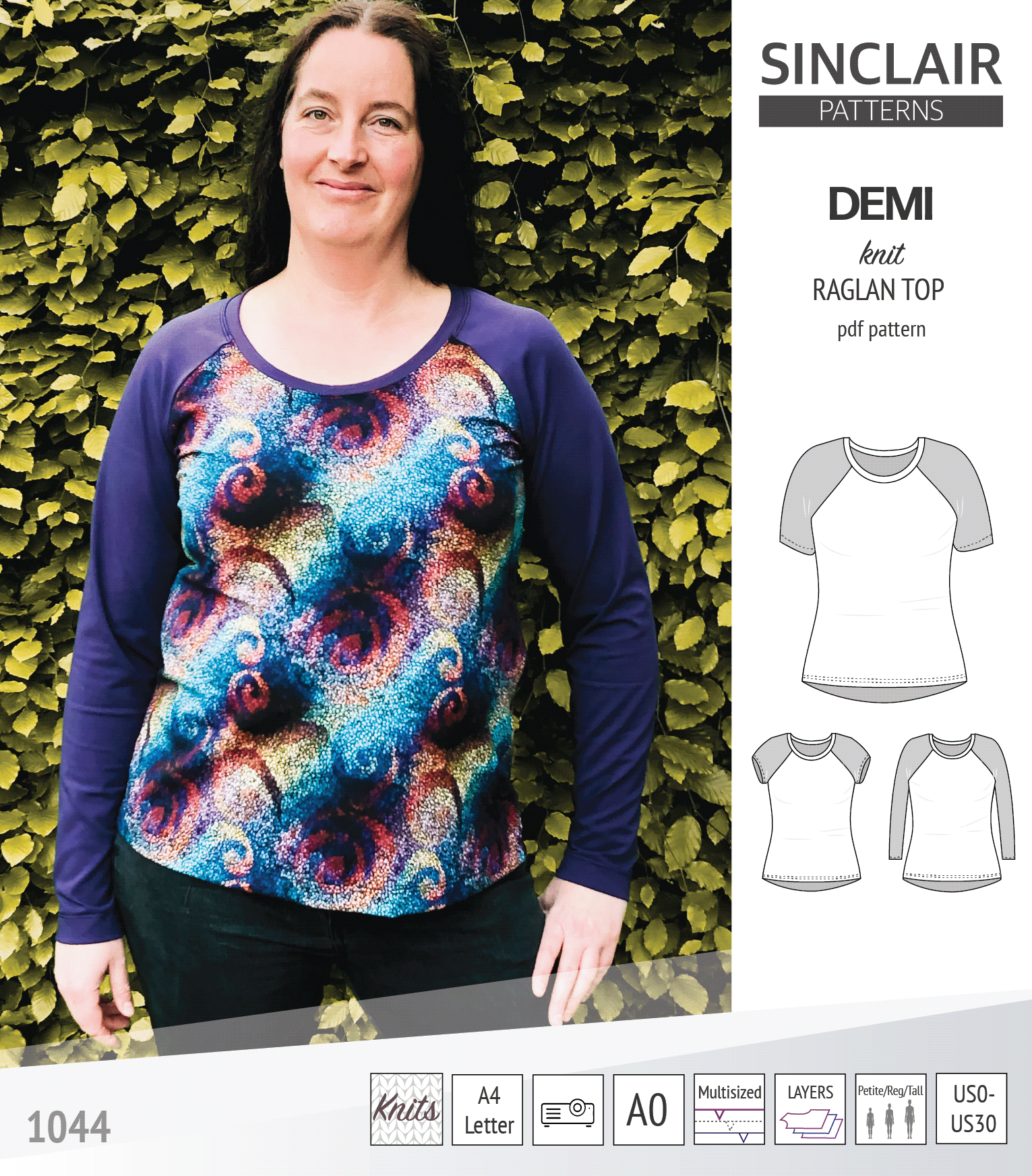 I love Sinclair patterns! I find them easy to sew and the finished garment always looks great! The Demi raglan is a quick make. It’s fitted but not tight. I love the curved hemline. I made the long sleeve version in a petite. I’ve already made 2 and will definitely make more!