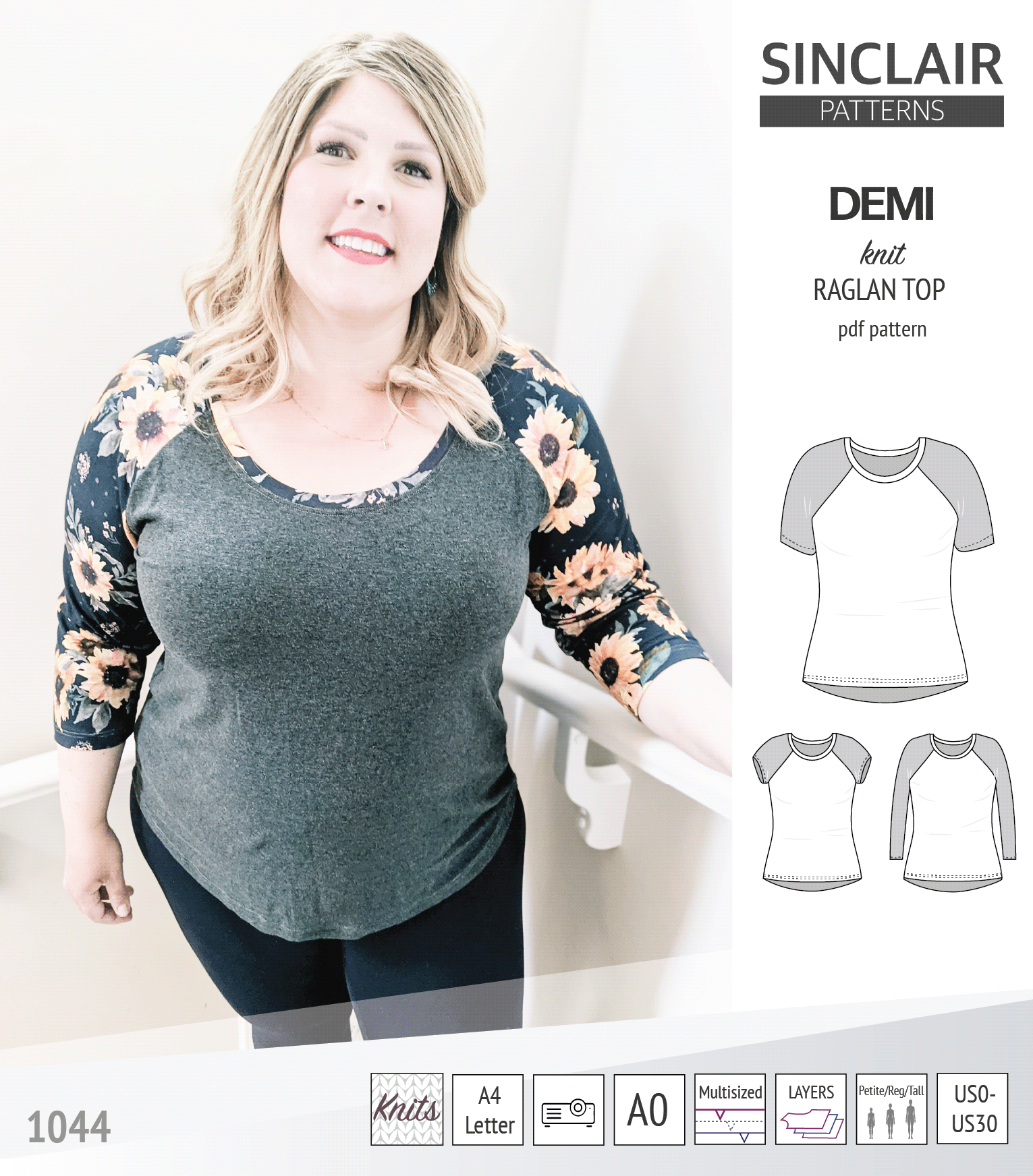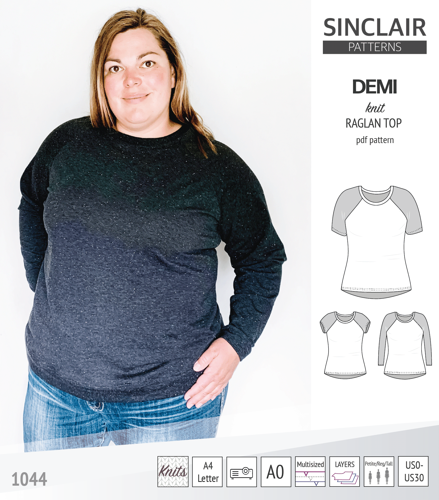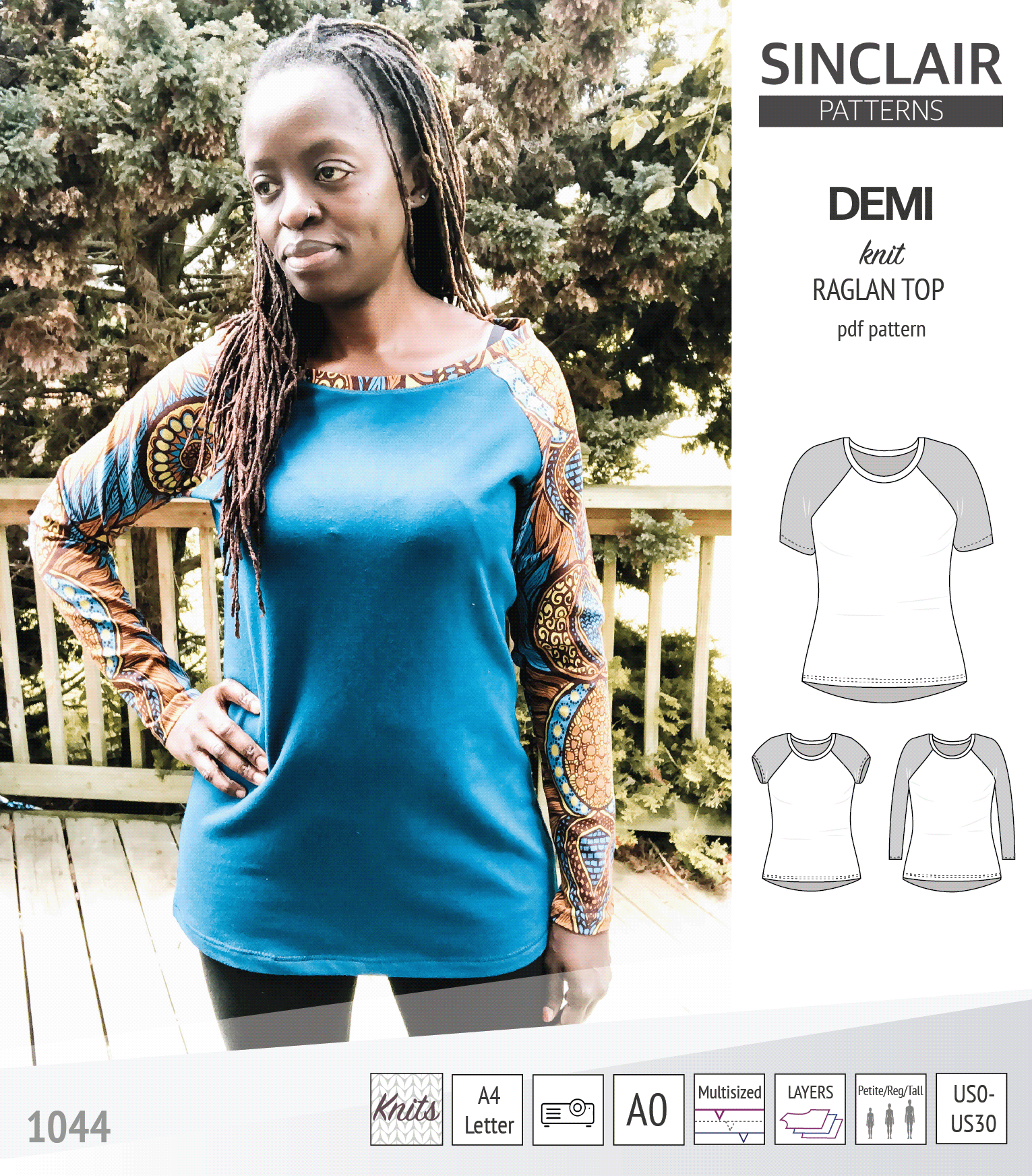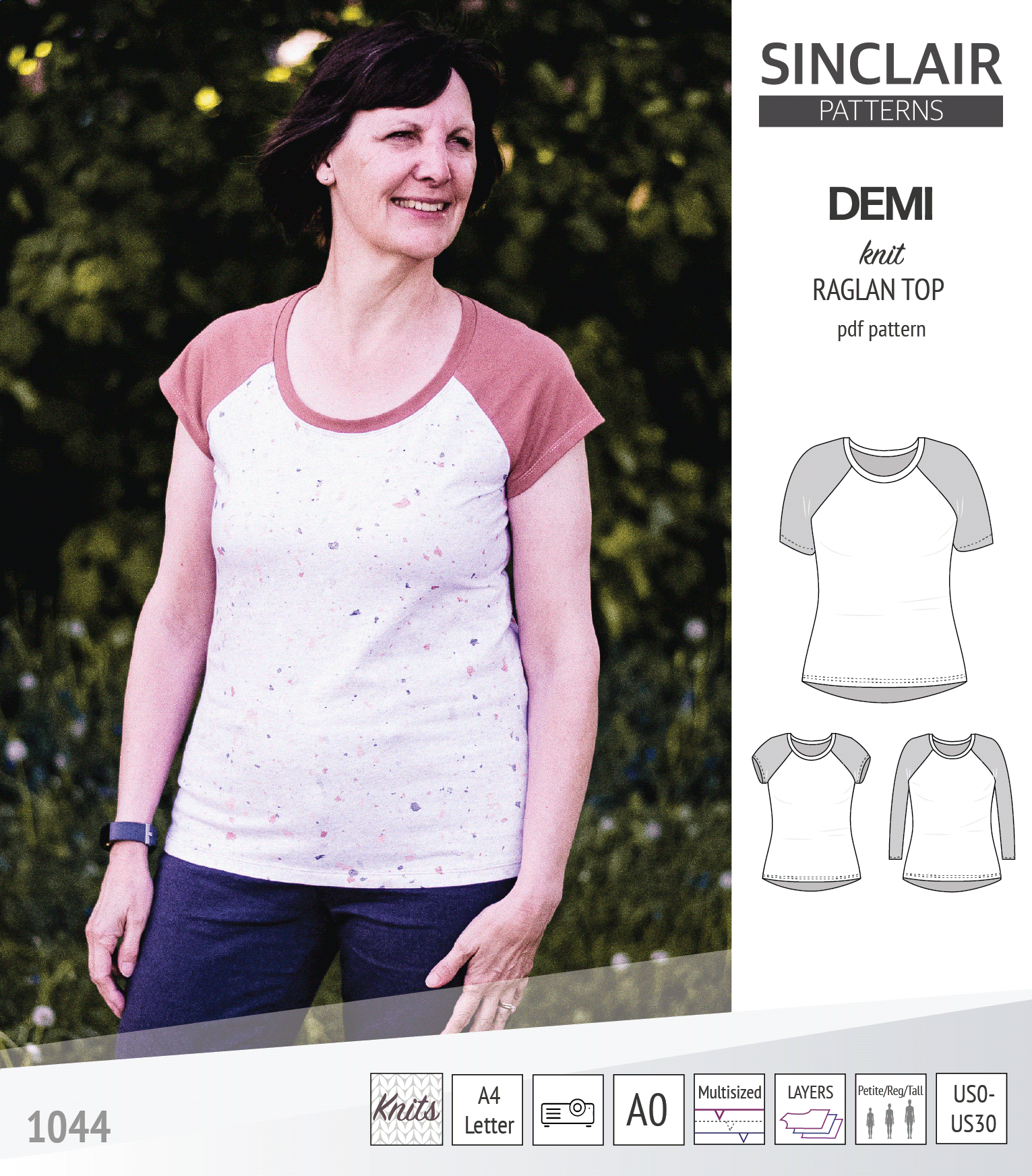 I love Sinclair patterns! I find them easy to sew and the finished garment always looks great! The Demi raglan is a quick make. It’s fitted but not tight. I love the curved hemline. I made the long sleeve version in a petite. I’ve already made 2 and will definitely make more!