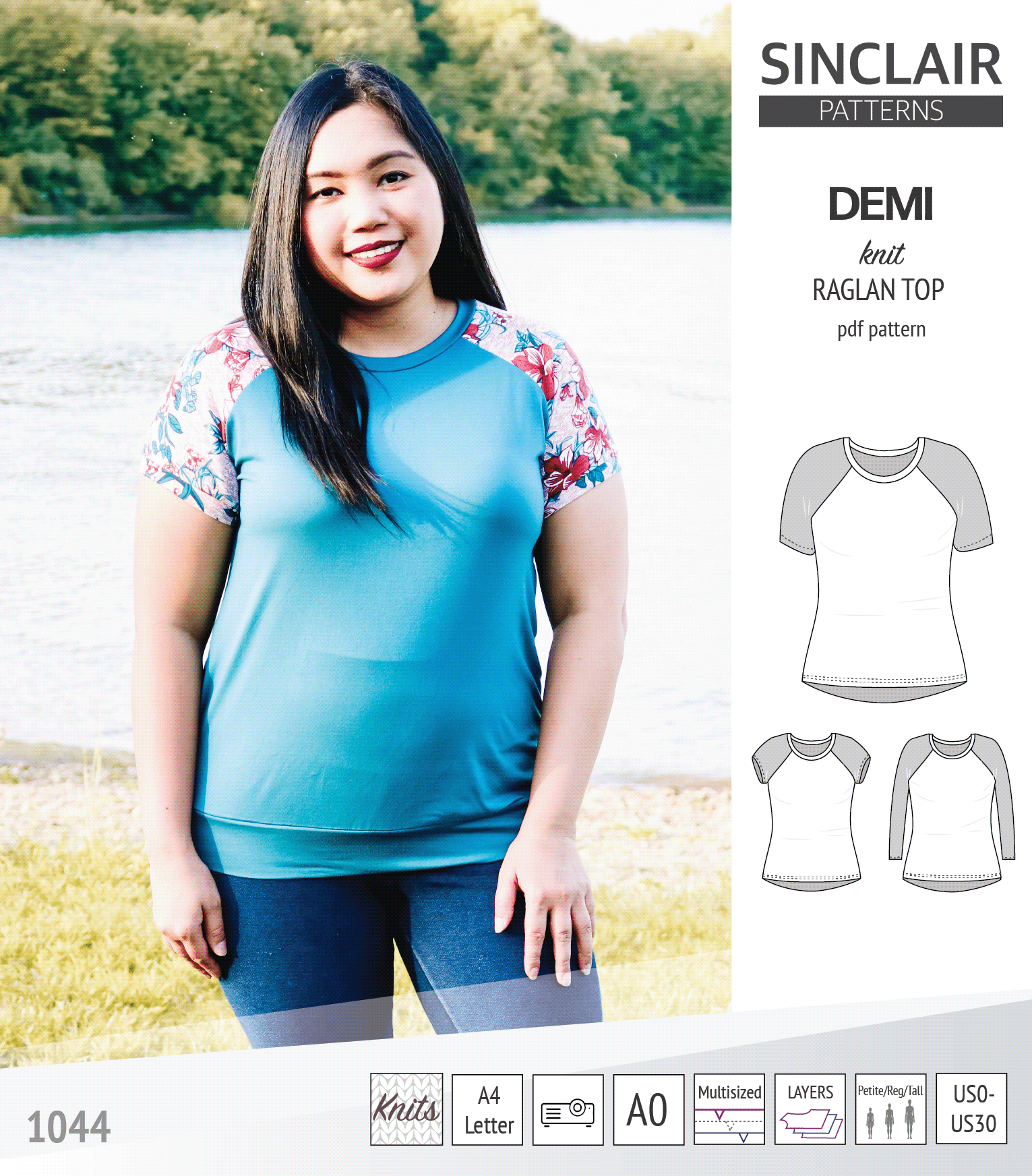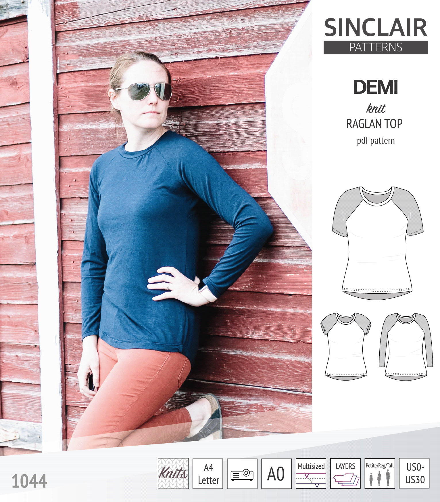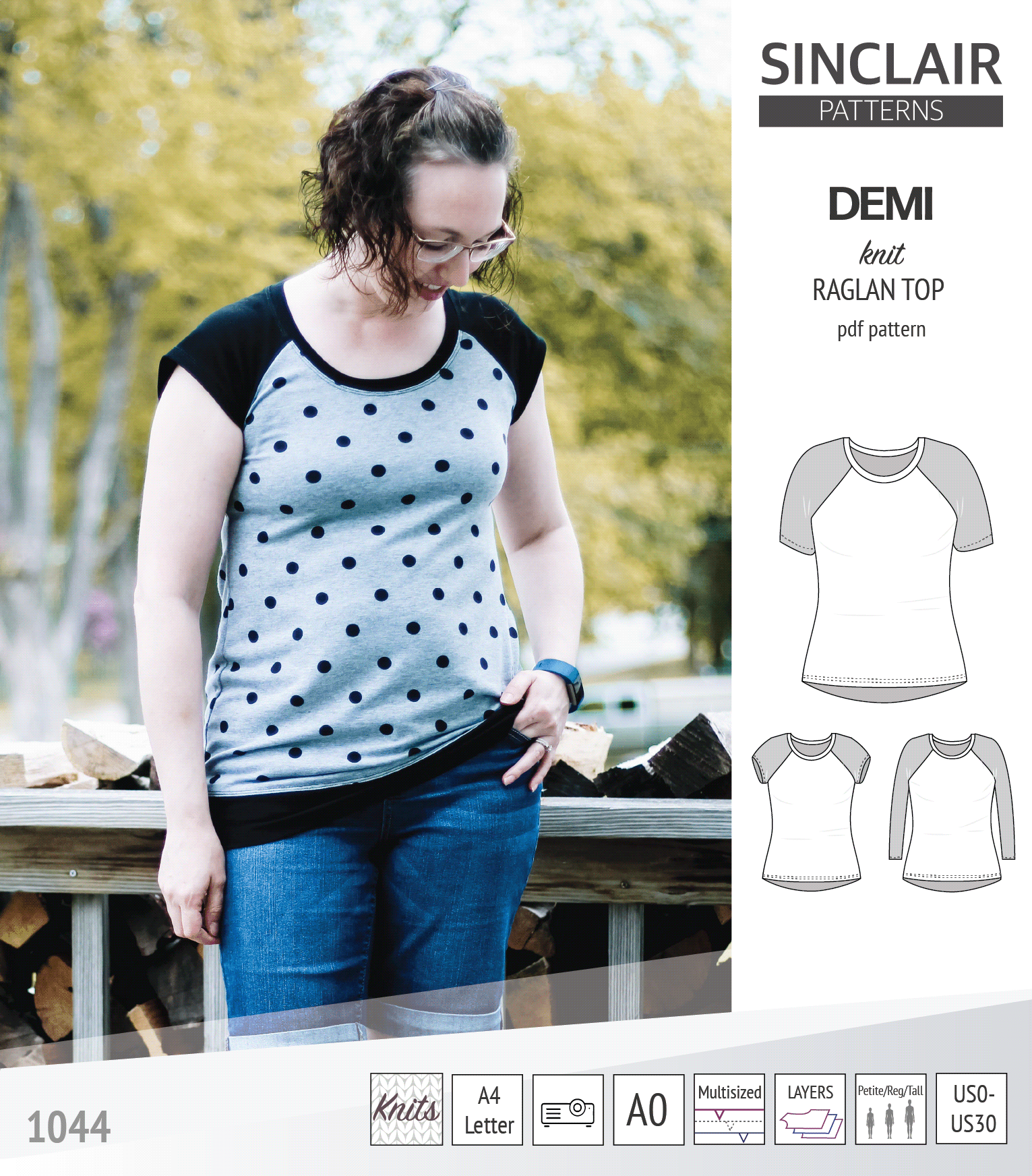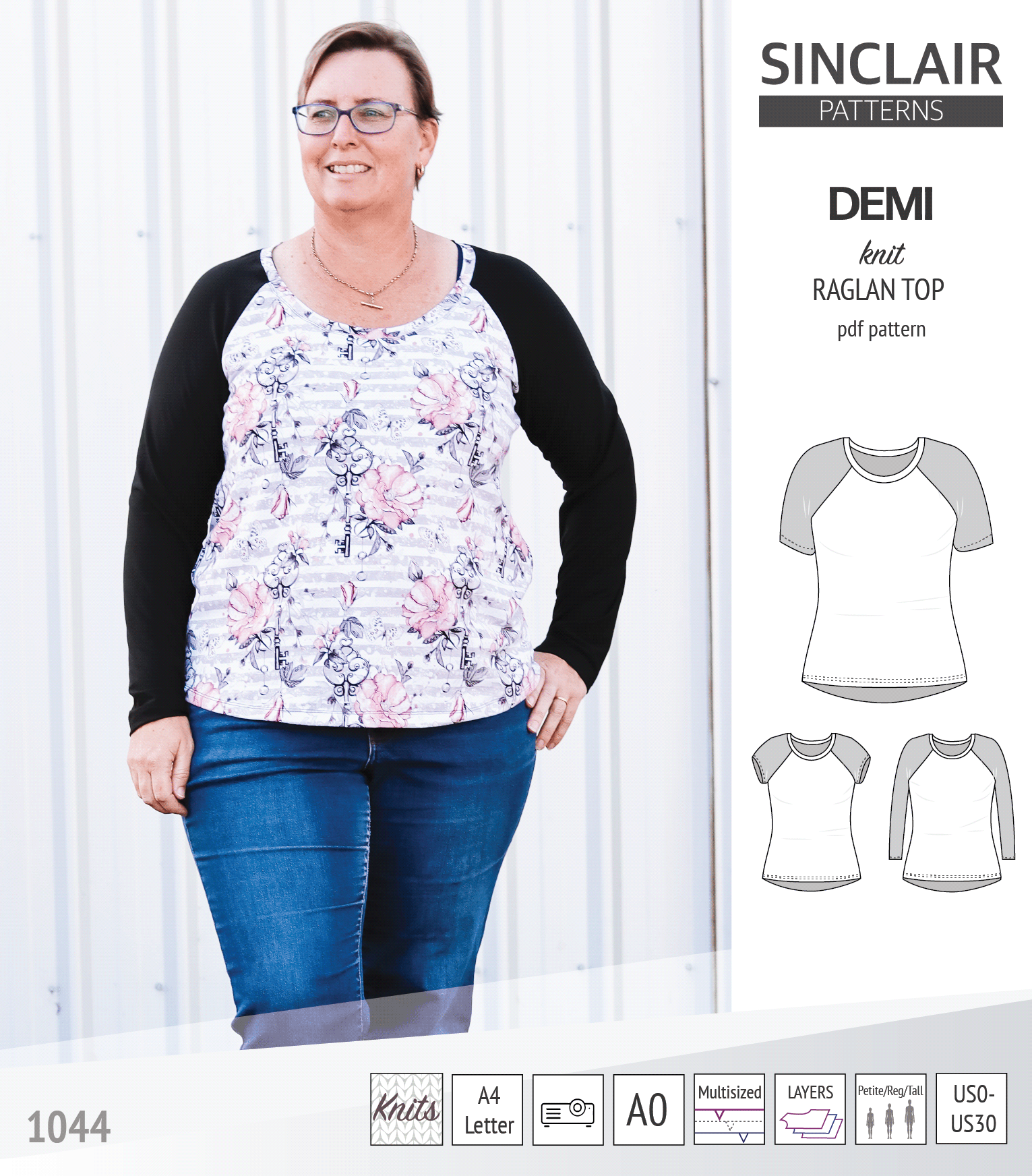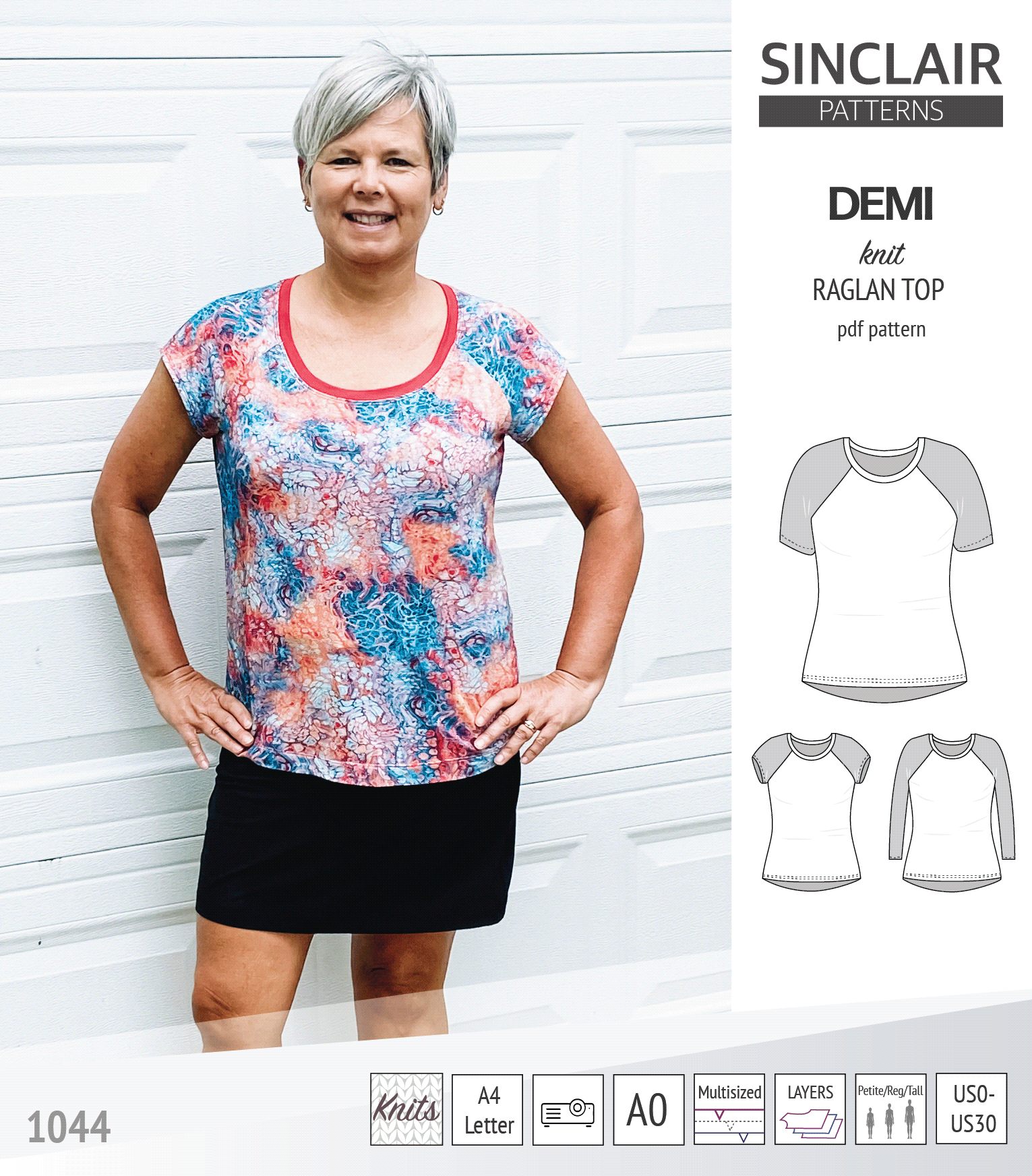 I love Sinclair patterns! I find them easy to sew and the finished garment always looks great! The Demi raglan is a quick make. It’s fitted but not tight. I love the curved hemline. I made the long sleeve version in a petite. I’ve already made 2 and will definitely make more!