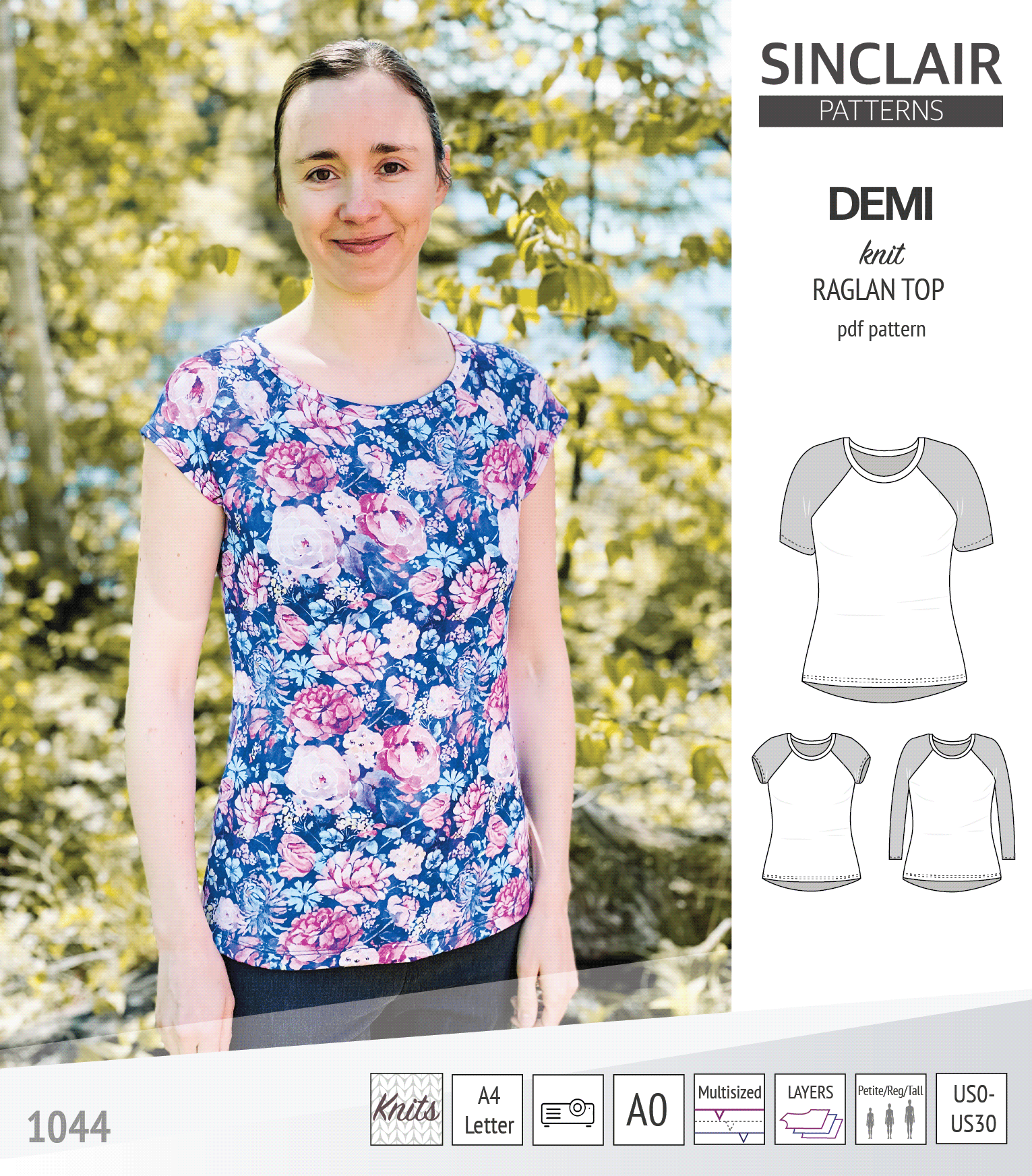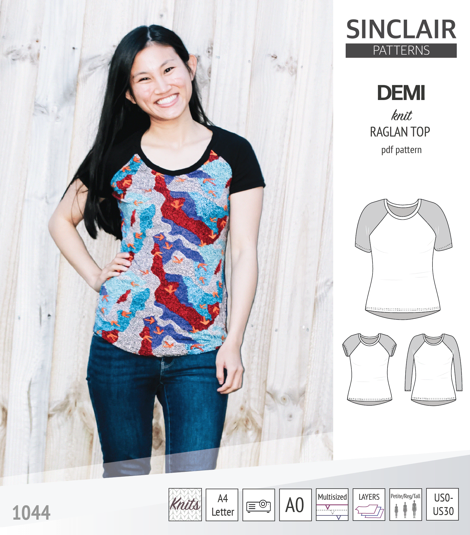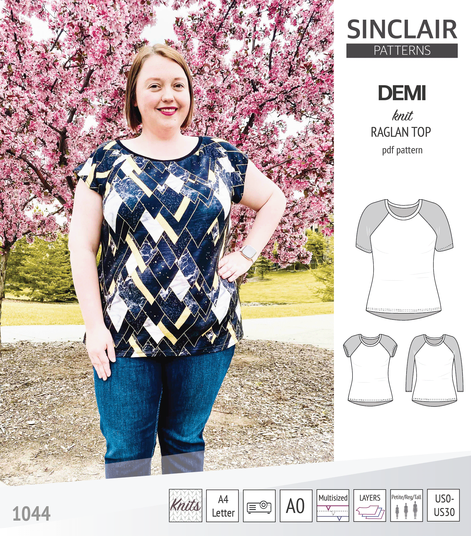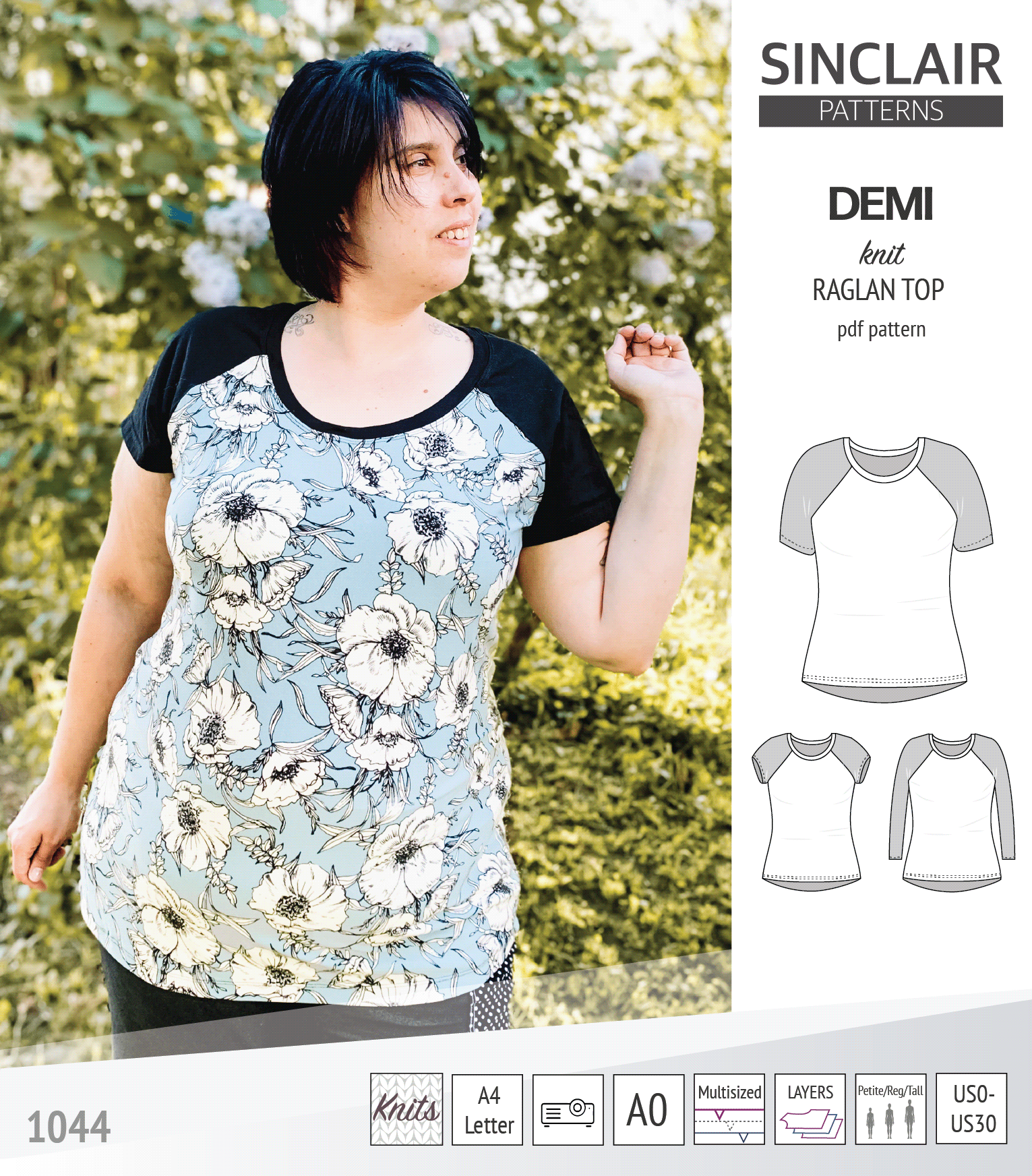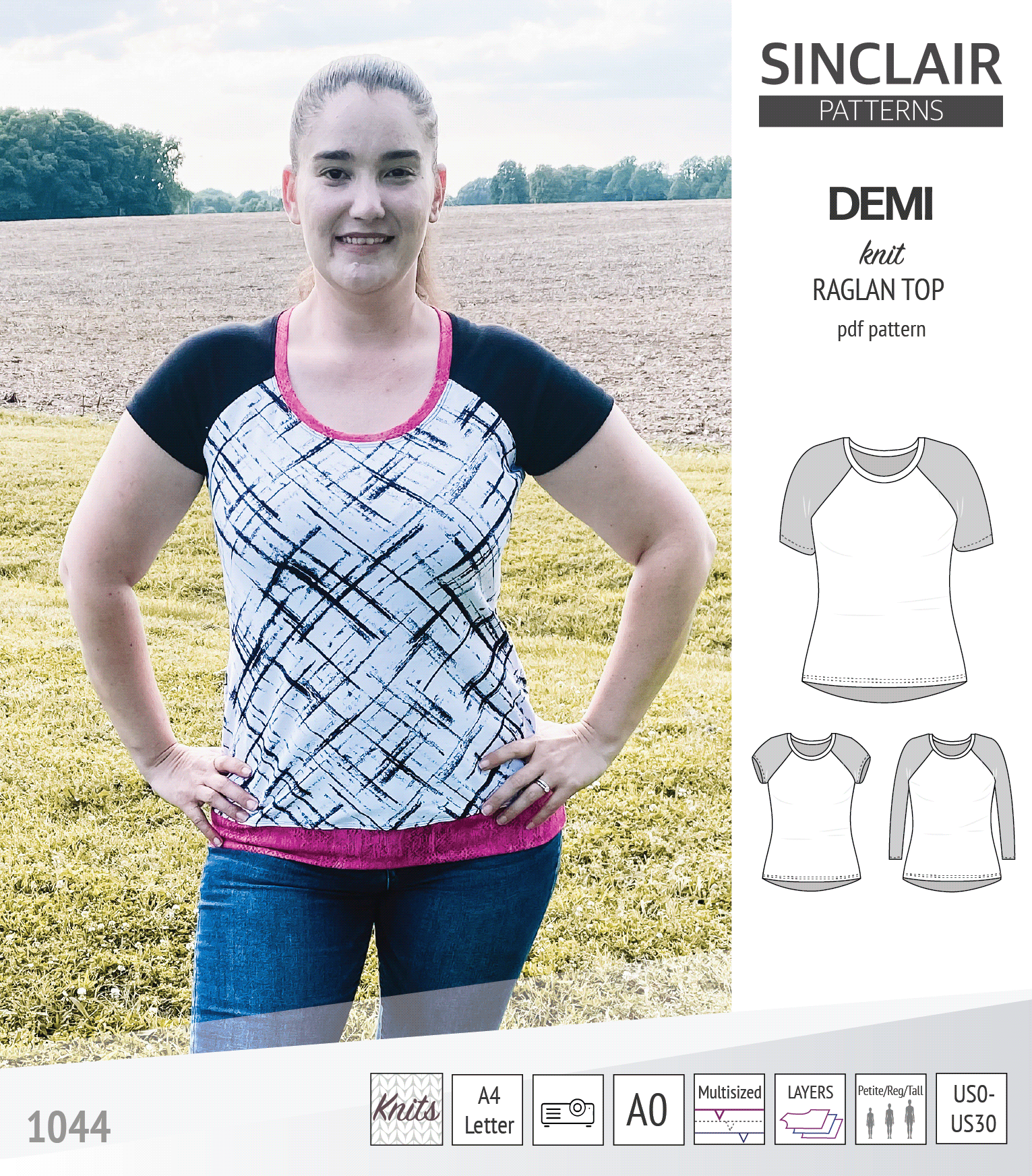 I love Sinclair patterns! I find them easy to sew and the finished garment always looks great! The Demi raglan is a quick make. It’s fitted but not tight. I love the curved hemline. I made the long sleeve version in a petite. I’ve already made 2 and will definitely make more!