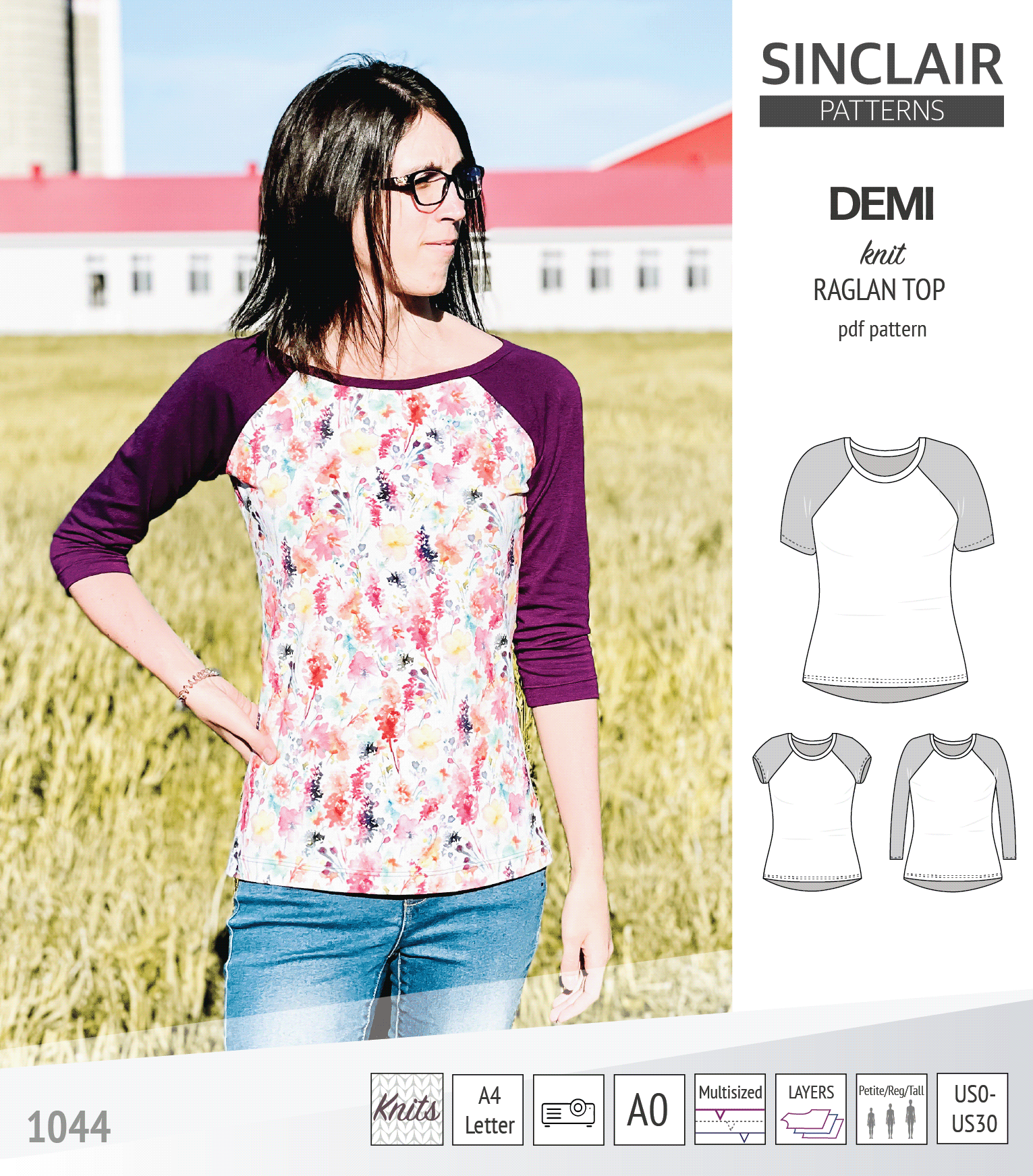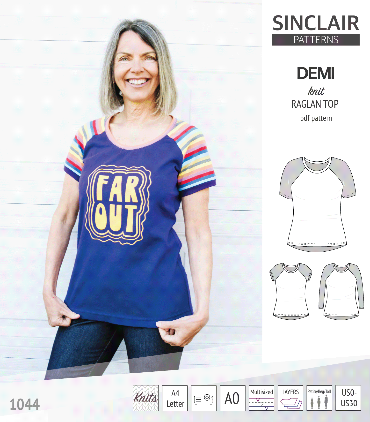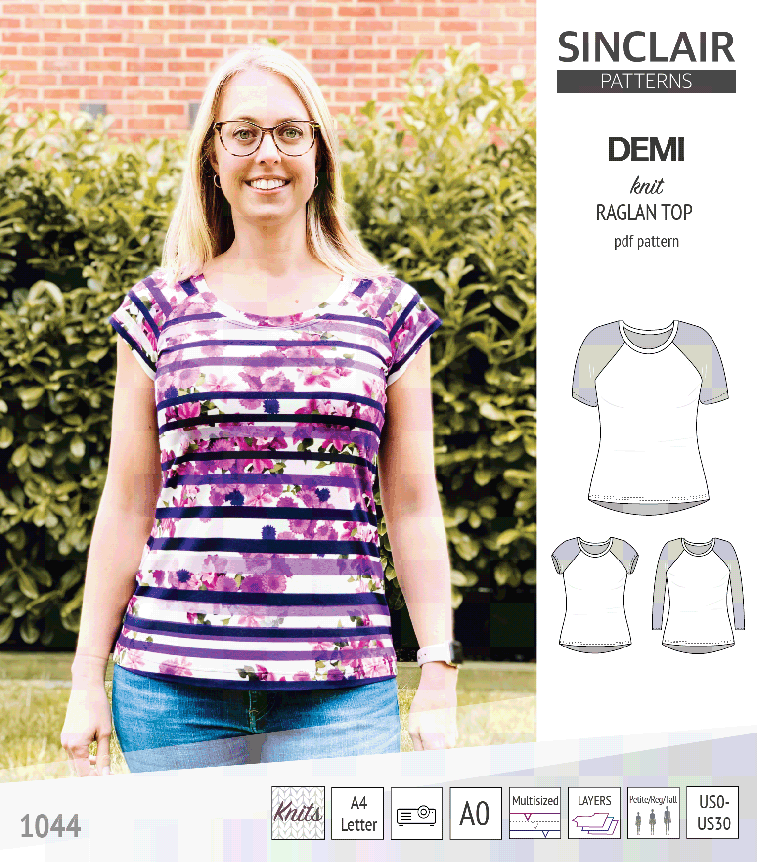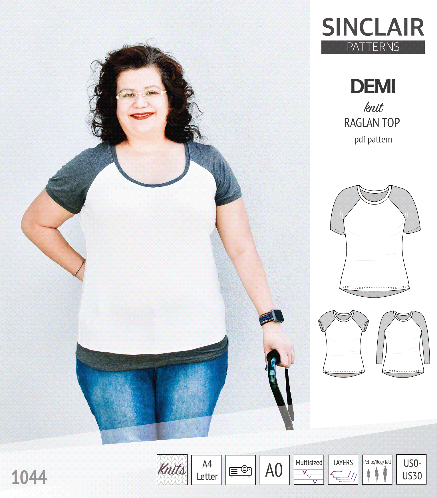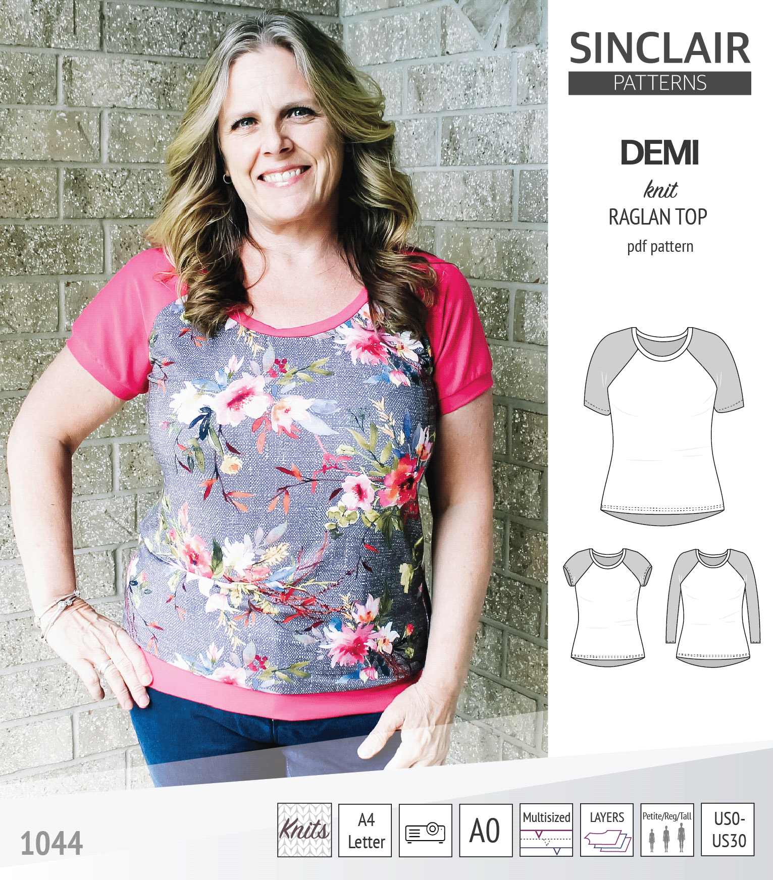 I love Sinclair patterns! I find them easy to sew and the finished garment always looks great! The Demi raglan is a quick make. It’s fitted but not tight. I love the curved hemline. I made the long sleeve version in a petite. I’ve already made 2 and will definitely make more!