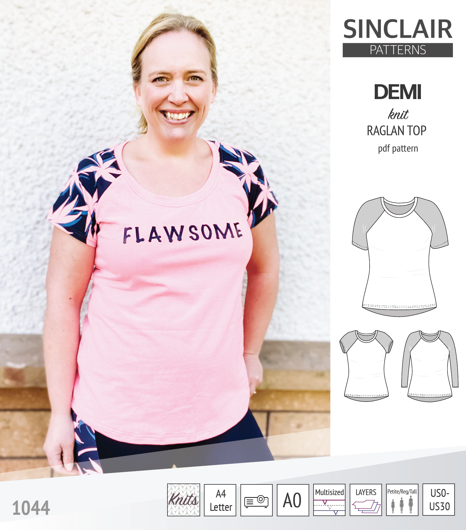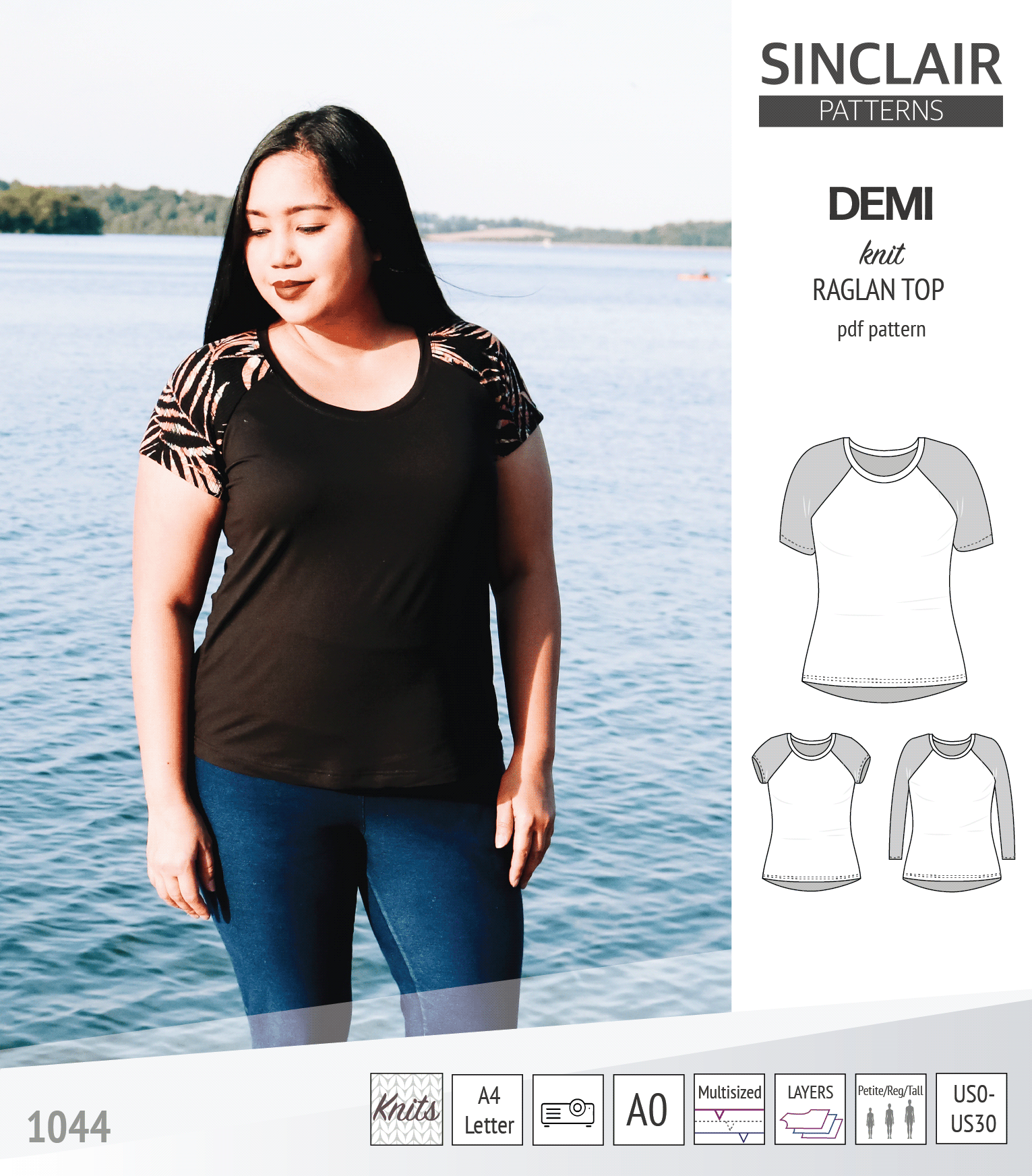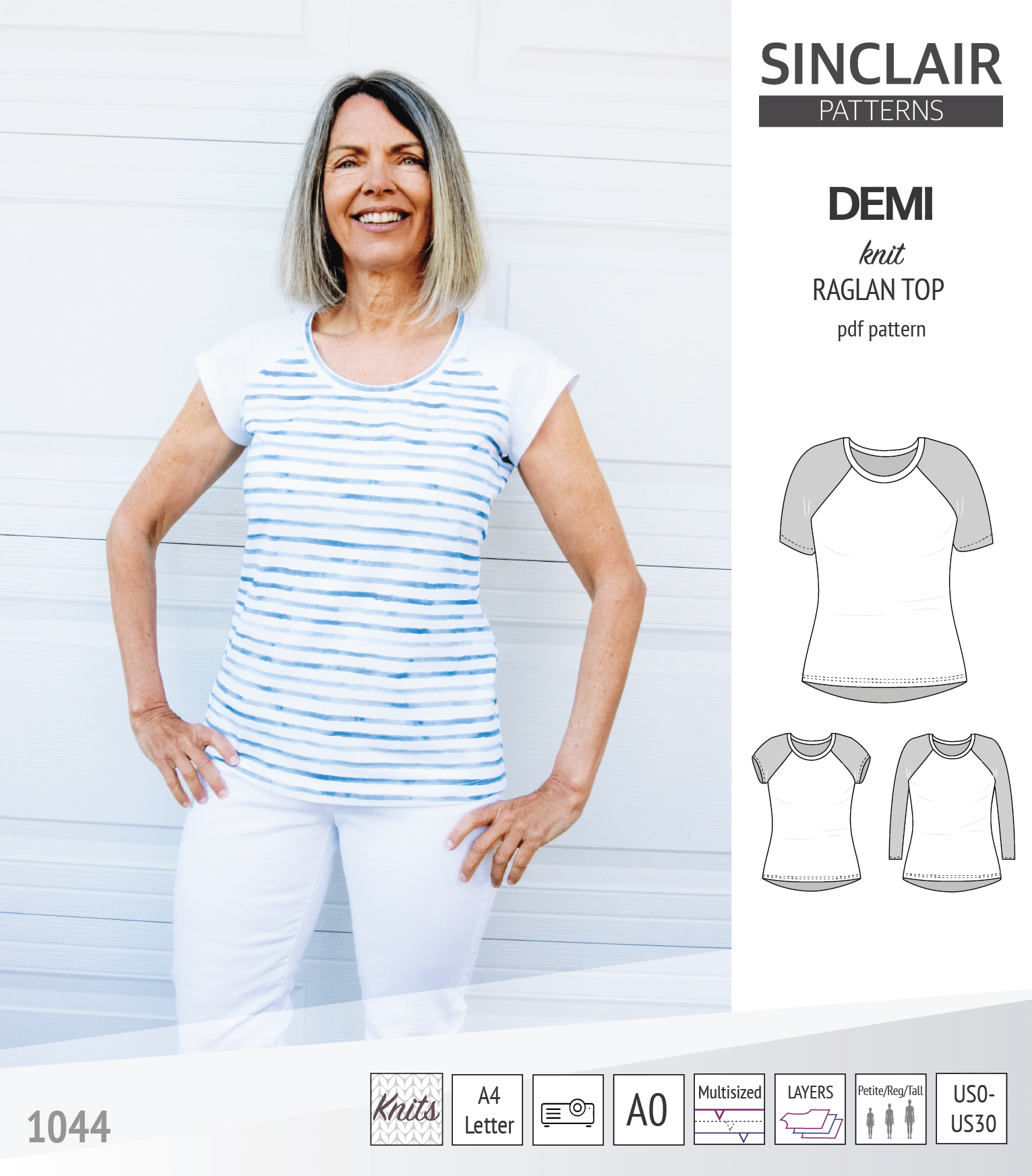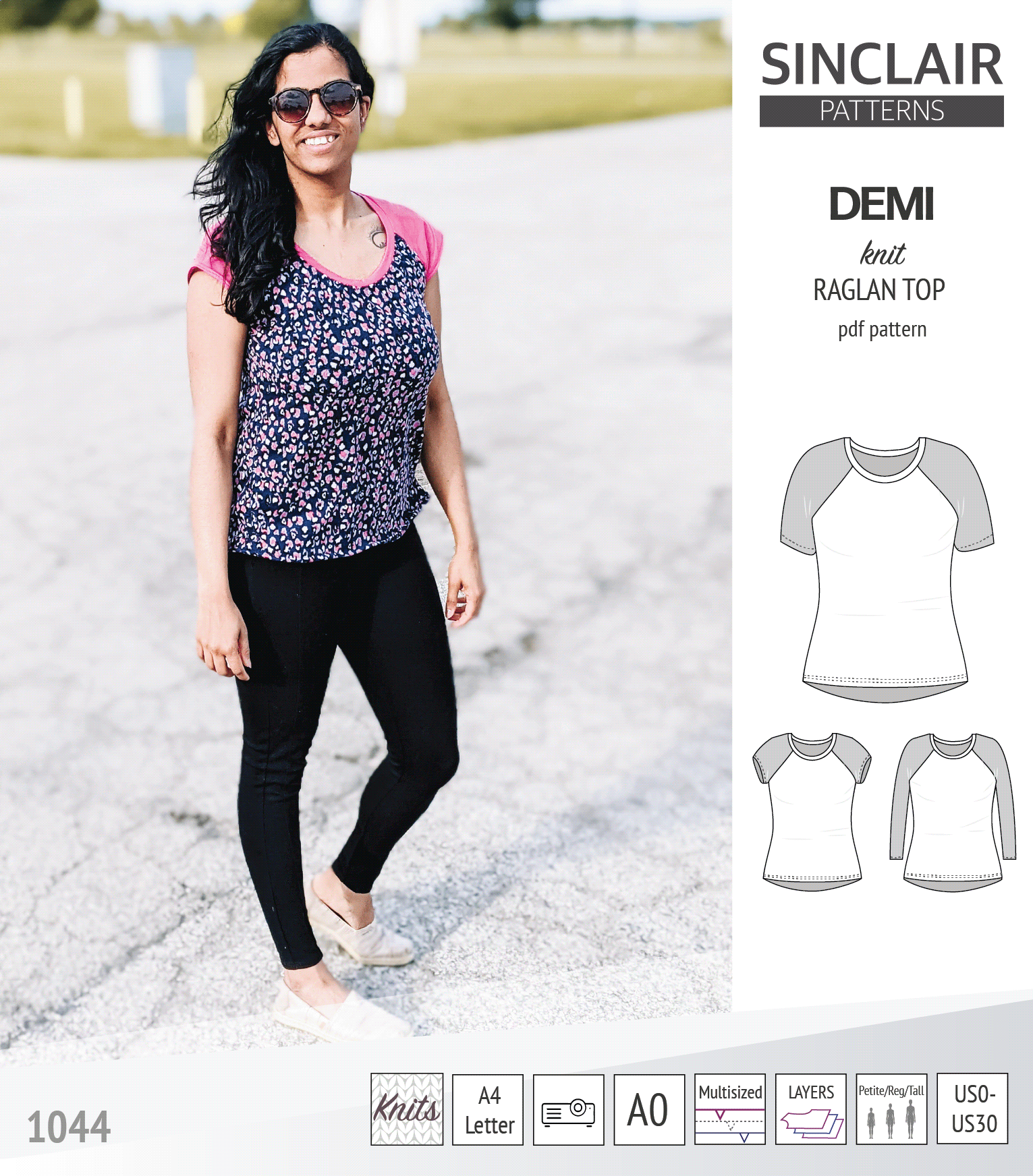 I love Sinclair patterns! I find them easy to sew and the finished garment always looks great! The Demi raglan is a quick make. It’s fitted but not tight. I love the curved hemline. I made the long sleeve version in a petite. I’ve already made 2 and will definitely make more!