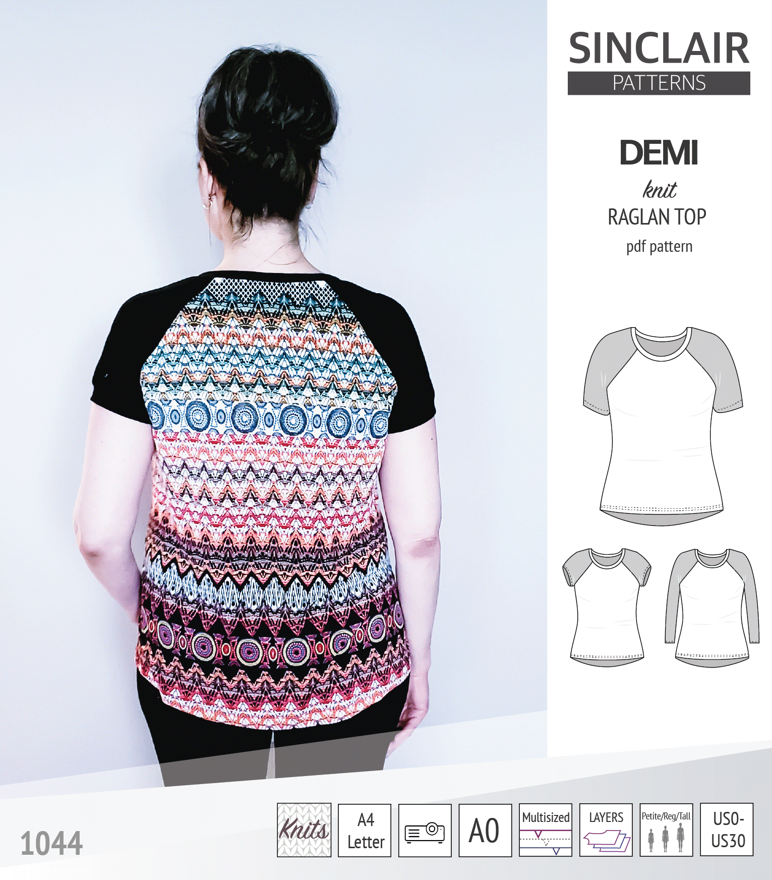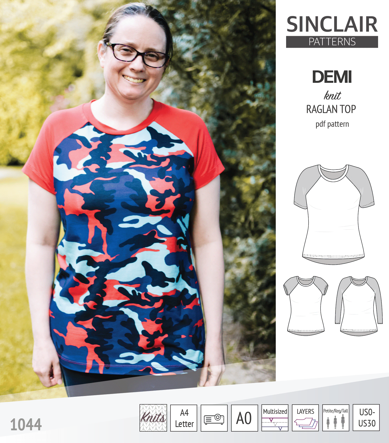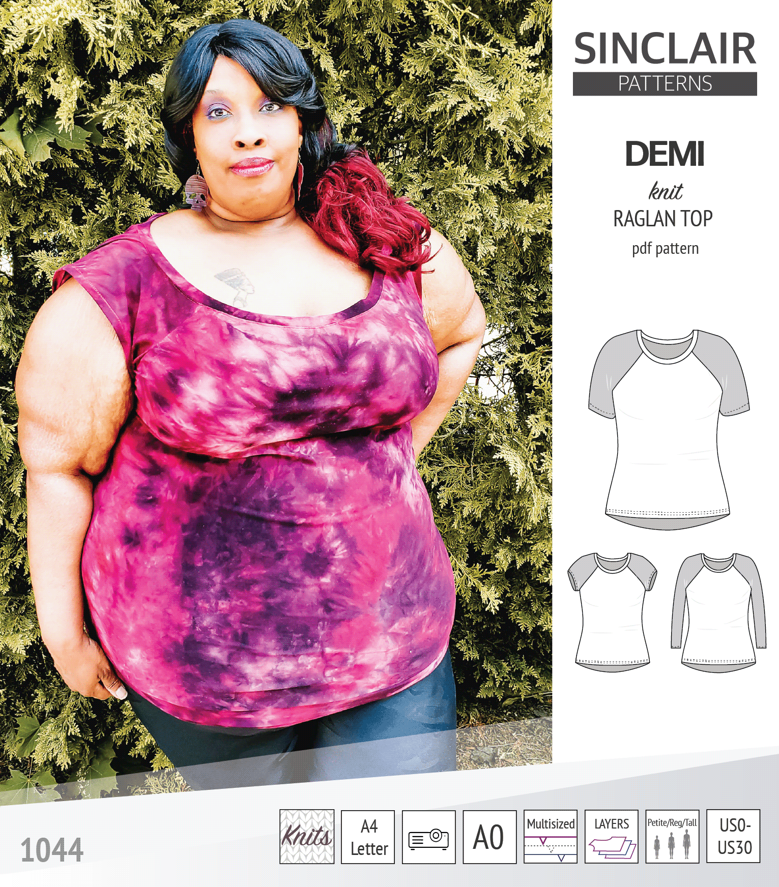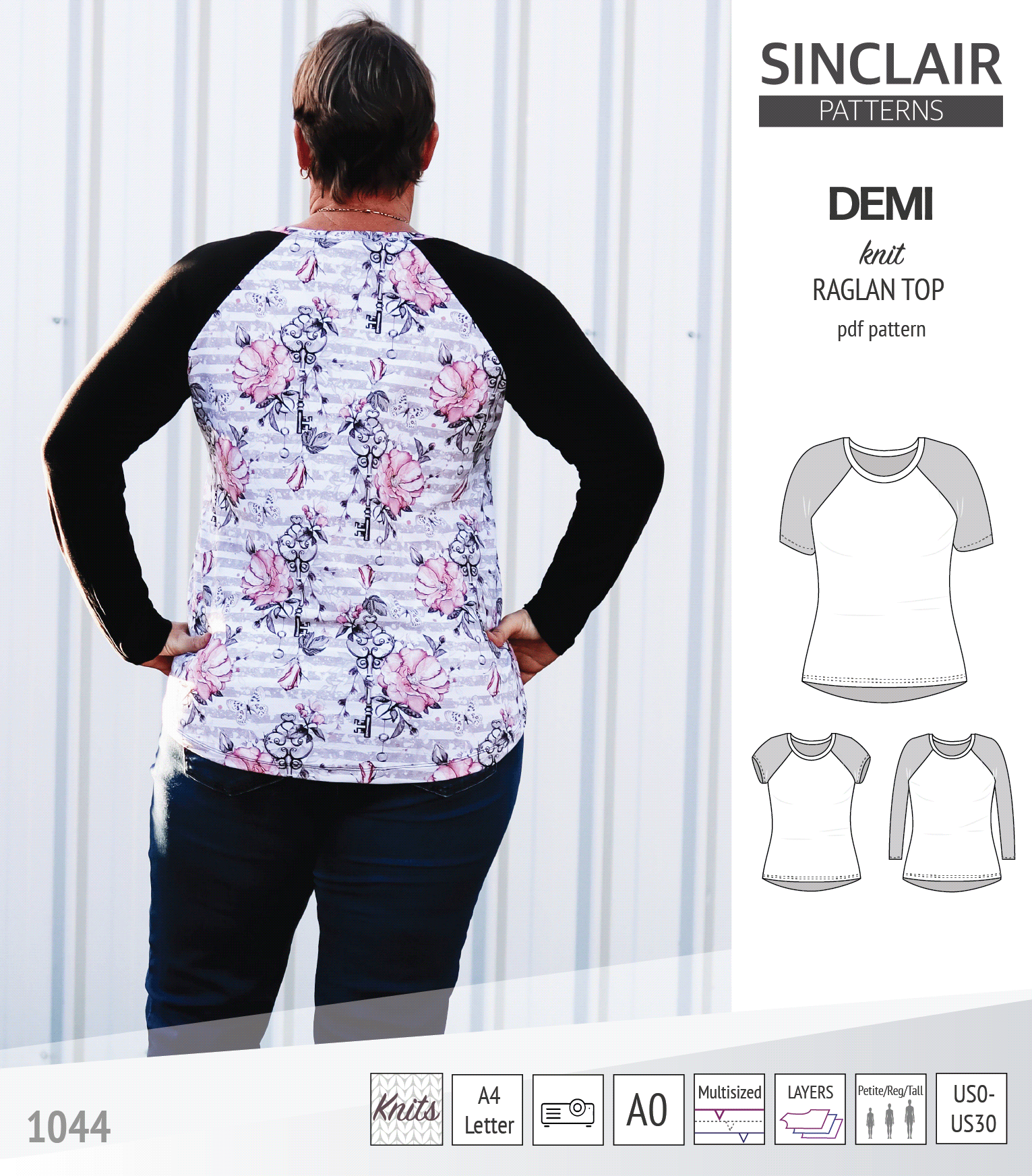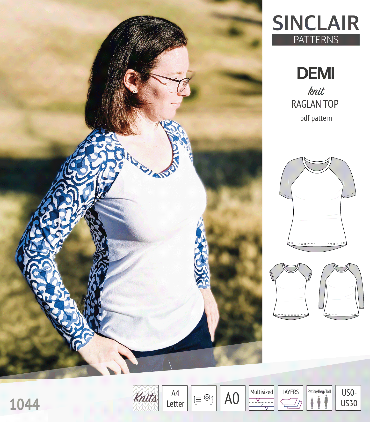 I love Sinclair patterns! I find them easy to sew and the finished garment always looks great! The Demi raglan is a quick make. It’s fitted but not tight. I love the curved hemline. I made the long sleeve version in a petite. I’ve already made 2 and will definitely make more!