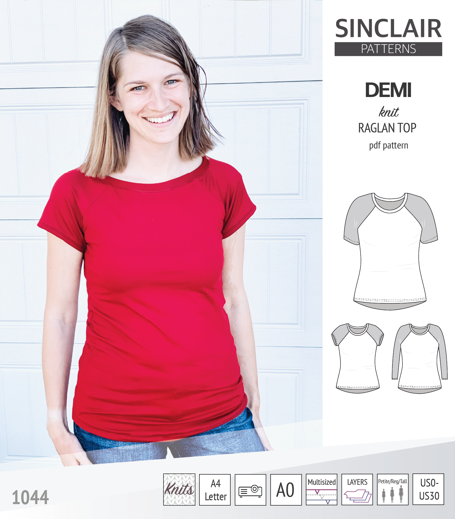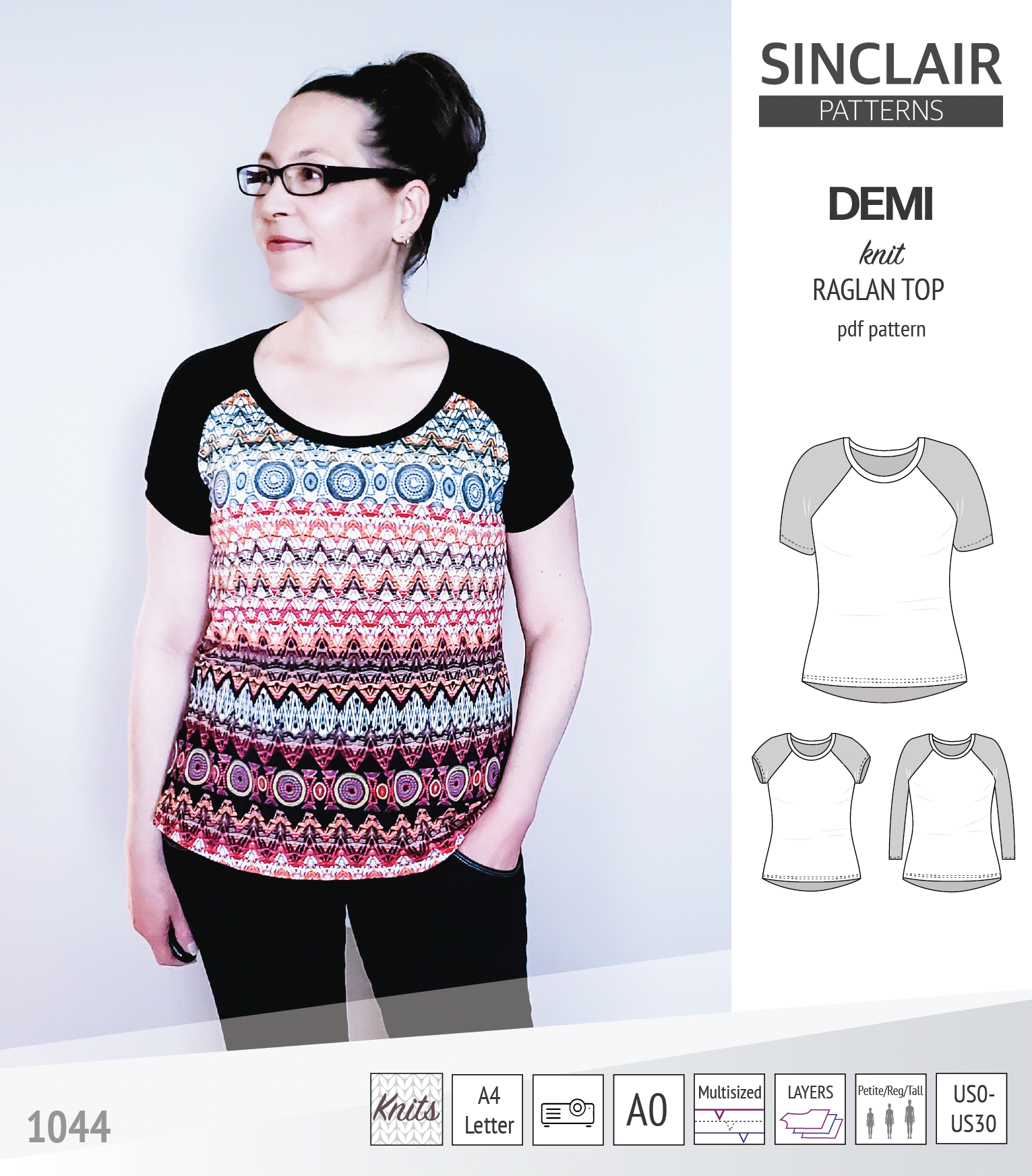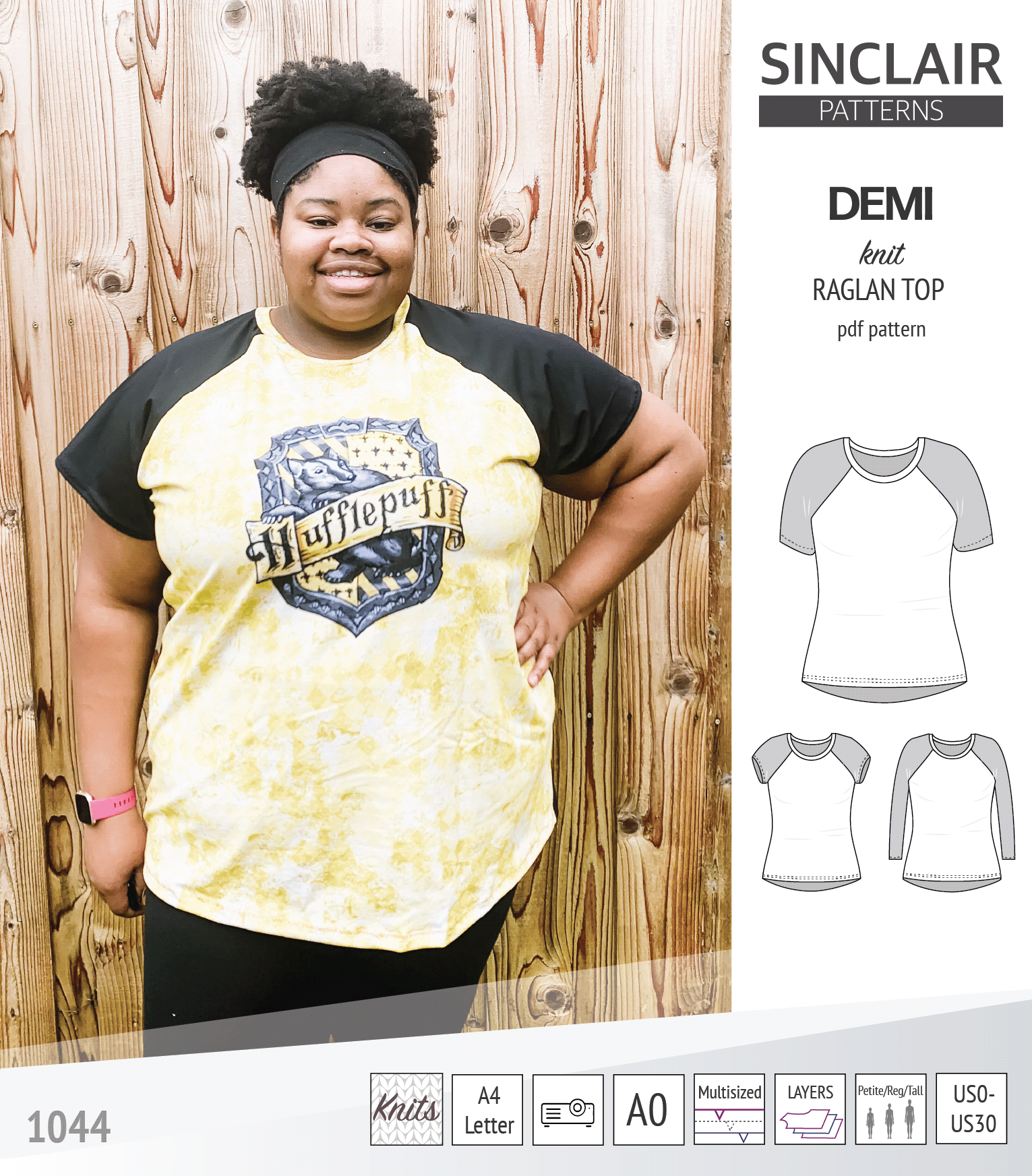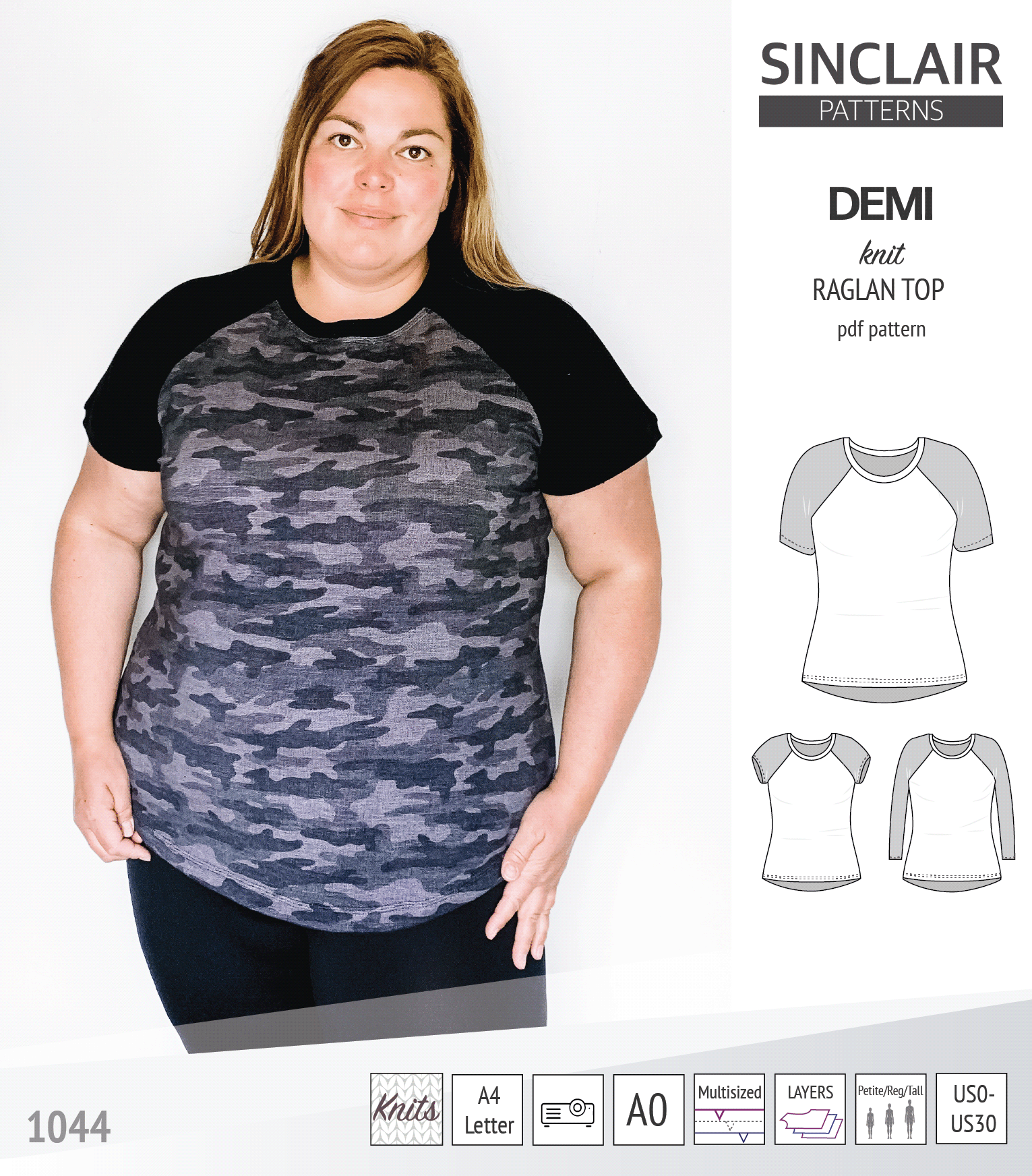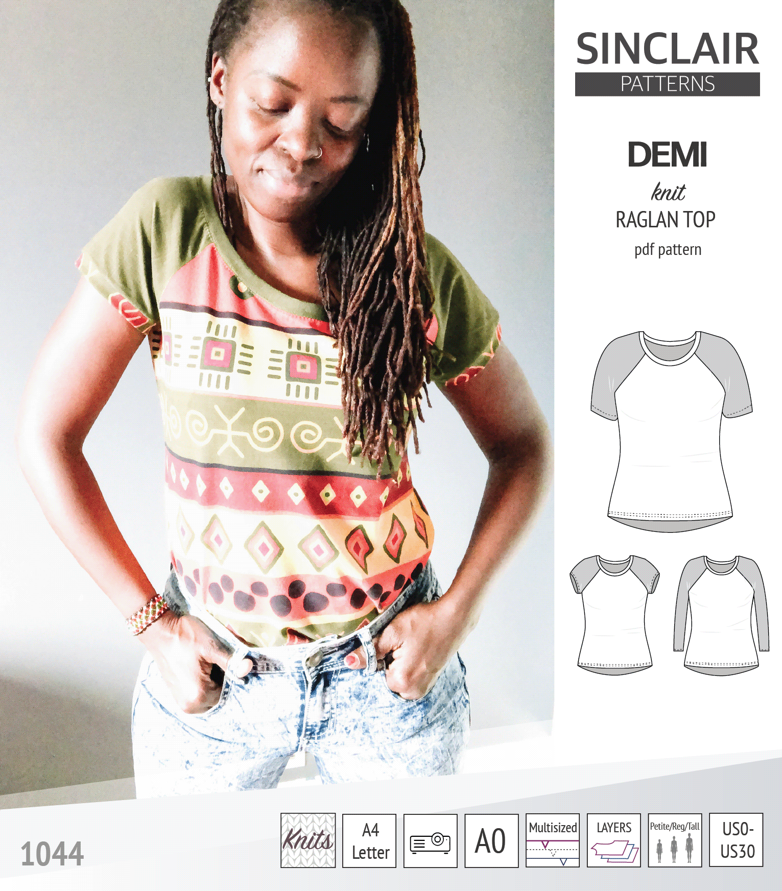 I love Sinclair patterns! I find them easy to sew and the finished garment always looks great! The Demi raglan is a quick make. It’s fitted but not tight. I love the curved hemline. I made the long sleeve version in a petite. I’ve already made 2 and will definitely make more!
