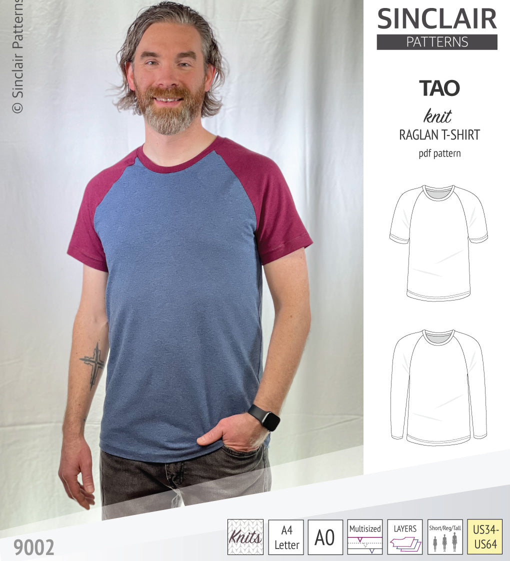 Sewing pattern pdf S9003 Walker knit raglan hoodie for men by Sinclair Patterns