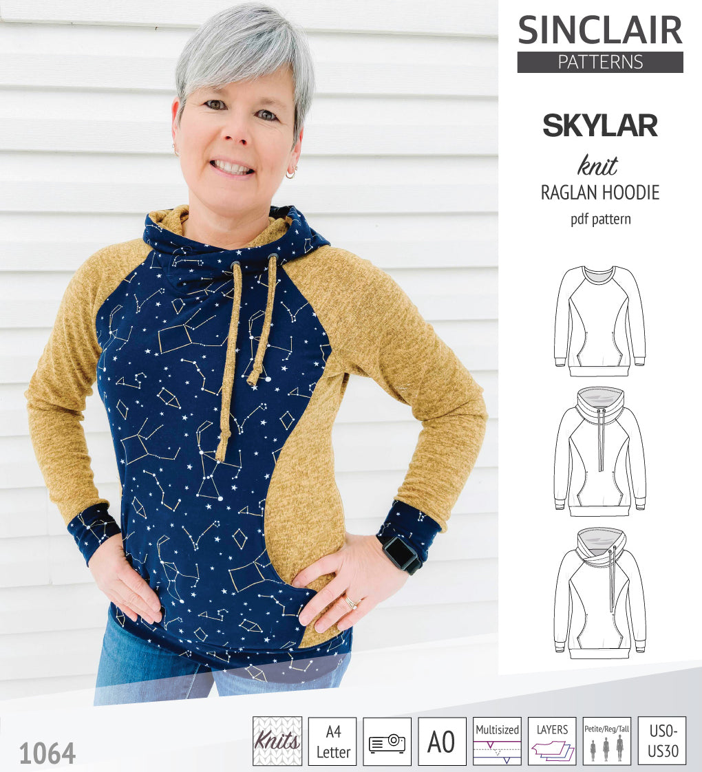PDF sewing pattern Raglan sweatshirt sweater hoodie for women with kangaroo pocket, hood, cowl and drawstrings