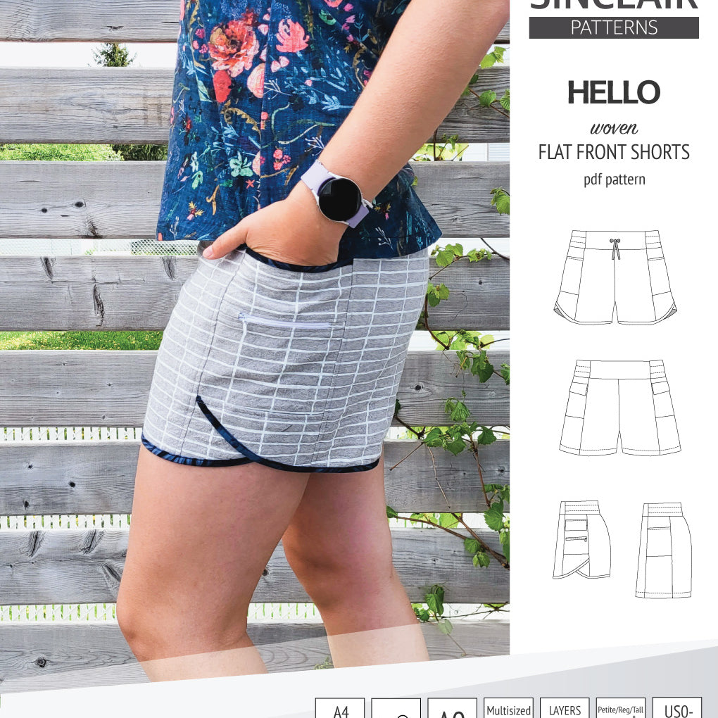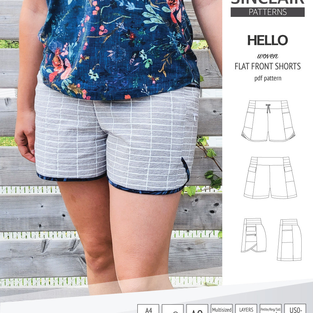 Hello flat front elastic back woven shorts with side panels (PDF)