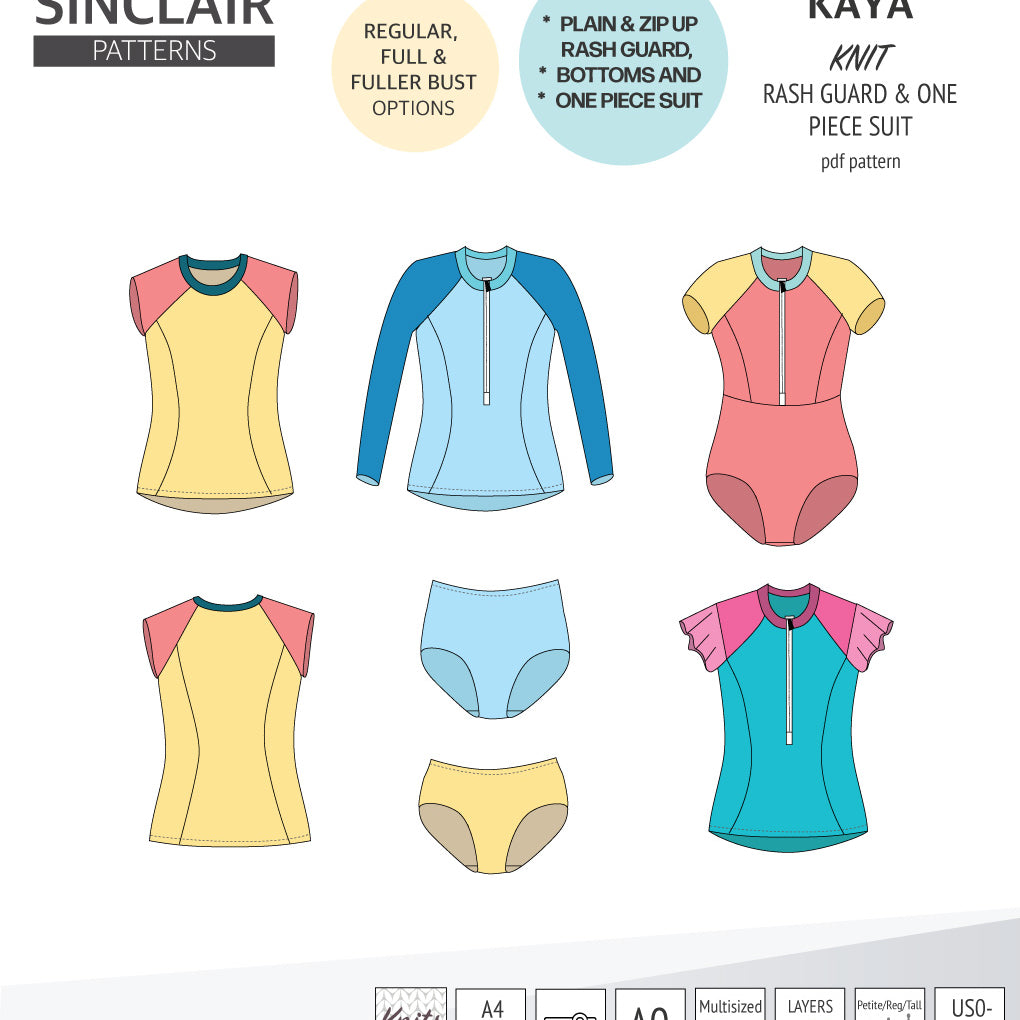 Kaya rash guard, bottoms and one piece swimming suit (PDF)