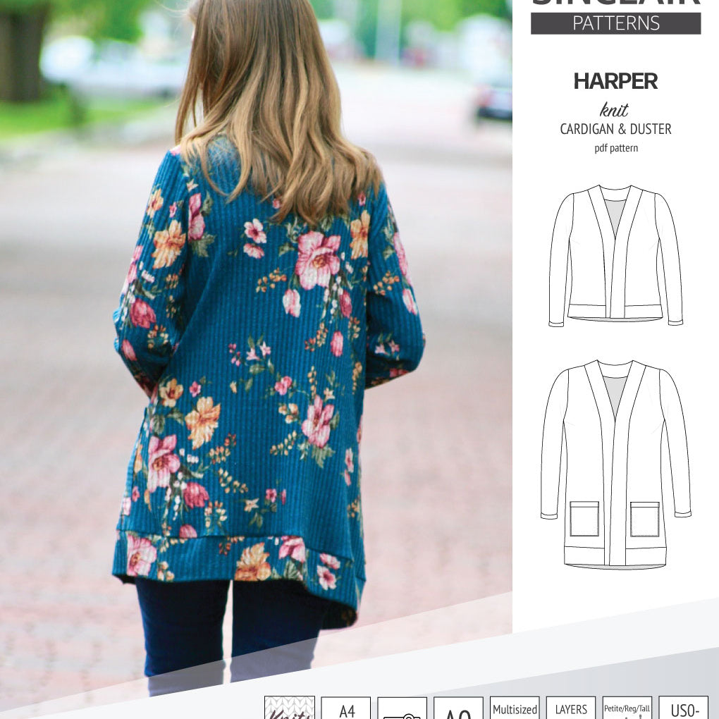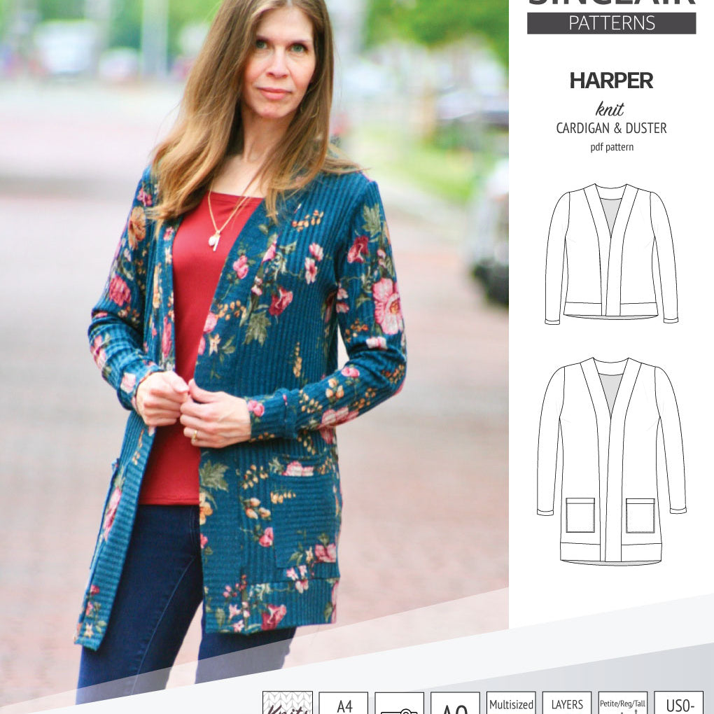 Harper classic knit cardigan and duster (PDF sewing pattern )