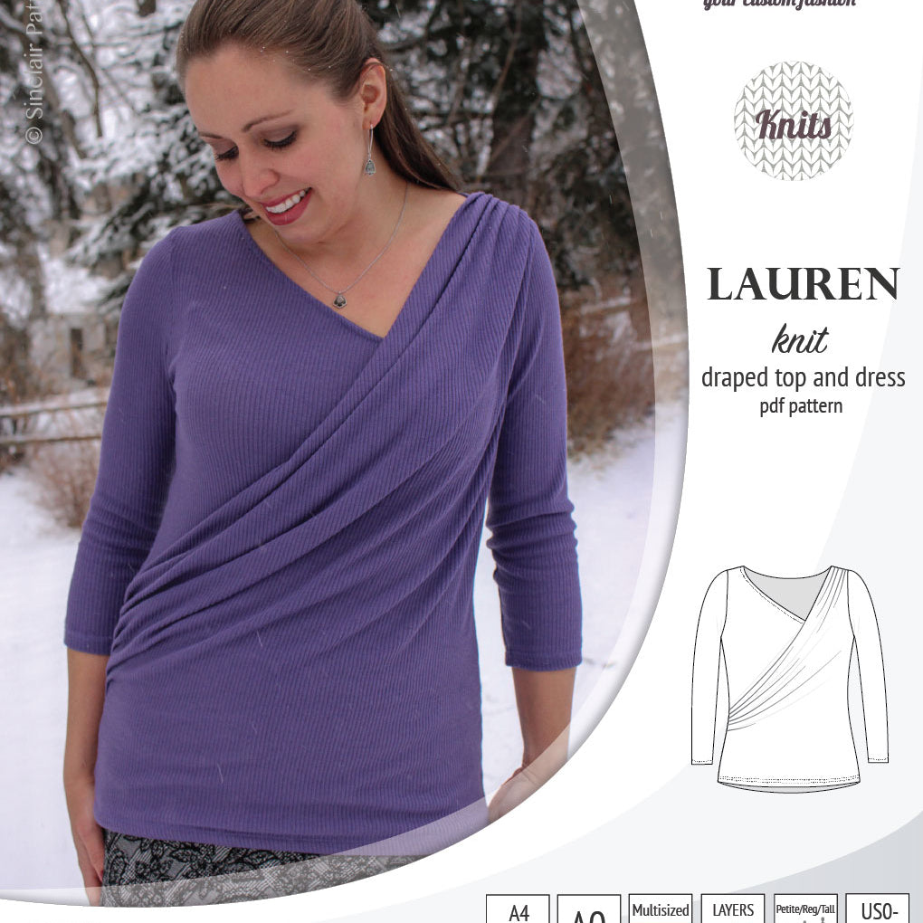 Lauren knit top and dress with front draped accent (PDF)