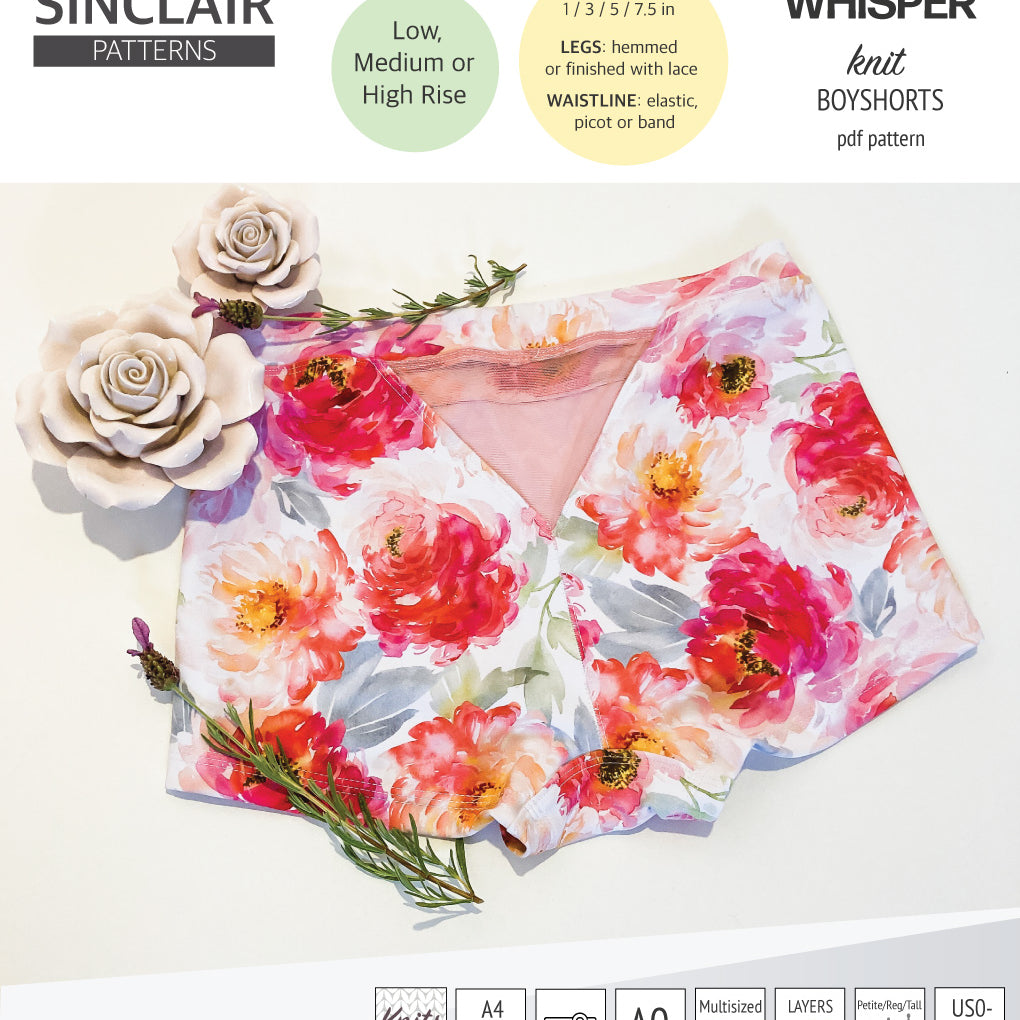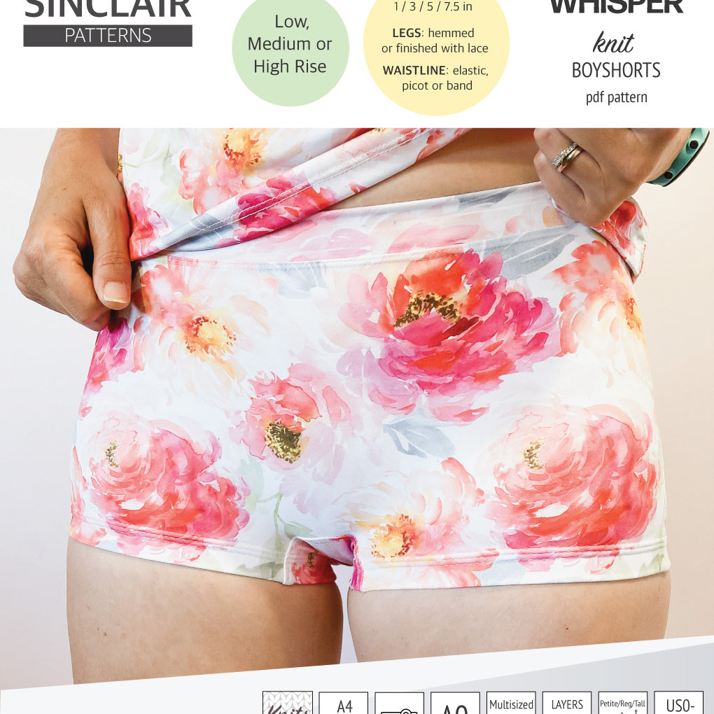 Whisper no front seam boyshorts with various inseams (PDF)