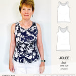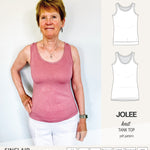 I have several tank top patterns, but there is something special about the Jolee. I have made 3 since I bought the pattern and I need more. The neckline depth is perfect, there is no gaping at the neckline or armhole and it covers the bra straps.