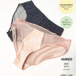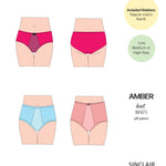 Fitted at the low/middle/high waist and hips medium cut briefs. Amber briefs feature a slim fully lined front panel that is a part of the gusset and a seamless side/back panel. The waistband and legs can be finished with an enclosed elastic or waistline band, which comes with regular or narrow options.